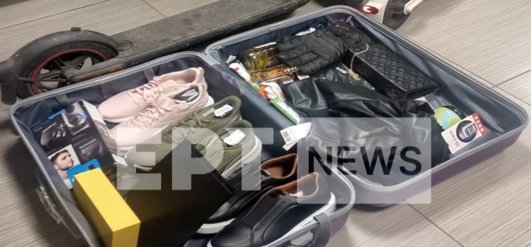 στήνουν μπλόκο στα διόδια των Αφιδνών. Ελέγχουν το λεωφορείο και εκεί διαπιστώνουν ότι ένας 35χρονος Θεσσαλονικιός έχει στις αποσκευές του δύο βαλίτσες με ένα σωρό κλοπιμαία. Είχαν μέσα δύο ηλεκτρικά πατίνια, κινητά τηλέφωνα, λαθραία τσιγάρα, μπουκάλια με ελαιόλαδο, φορτιστές και πολλά άλλα αντικείμενα.