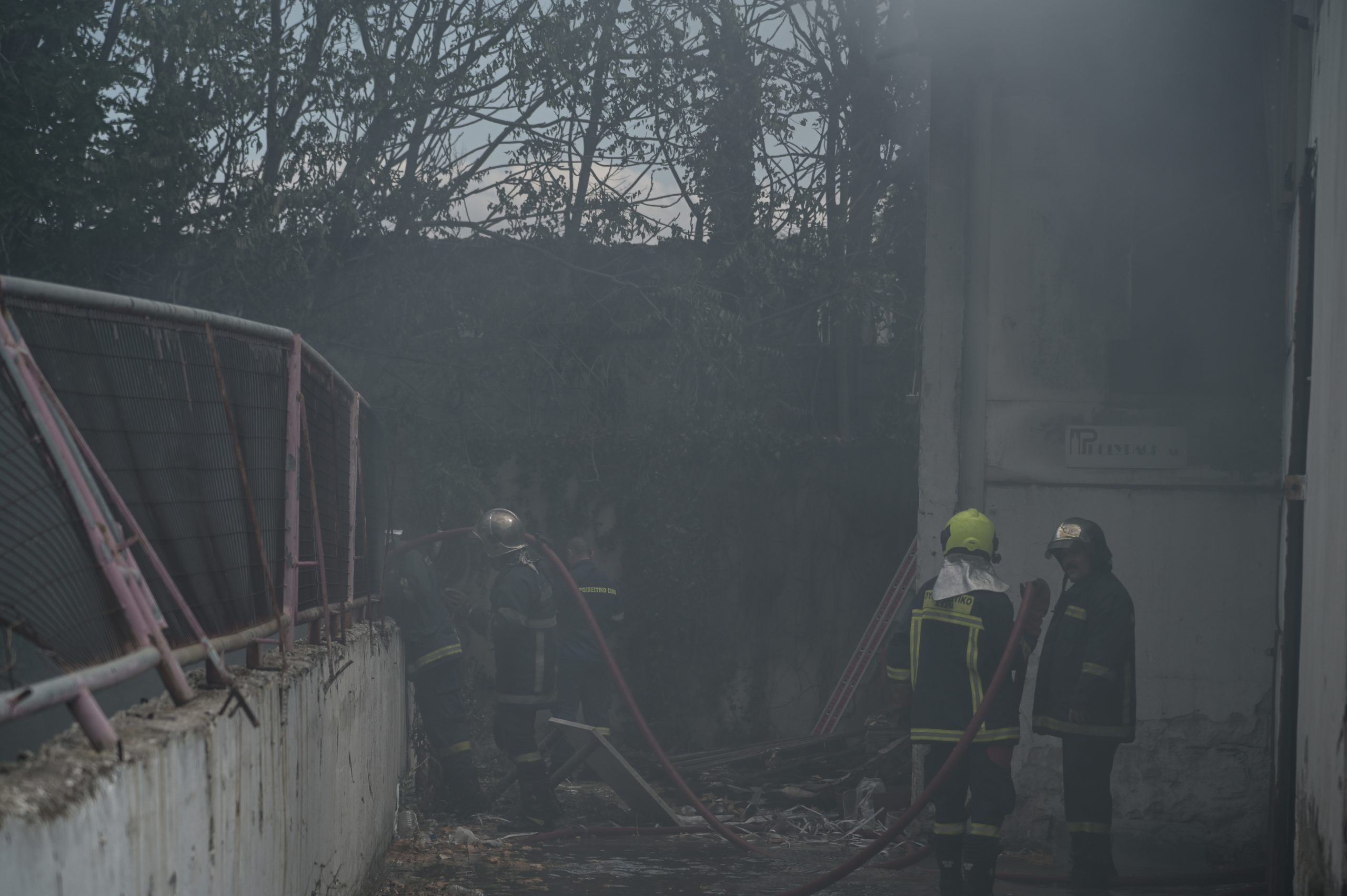Στη συνέχεια λόγω πυροθερμικού φορτίου η φωτιά επεκτάθηκε σε παρακείμενη αποθήκη με υφάσματα που βρισκόταν εκτός της δομής με αποτέλεσμα να καεί η μισή.