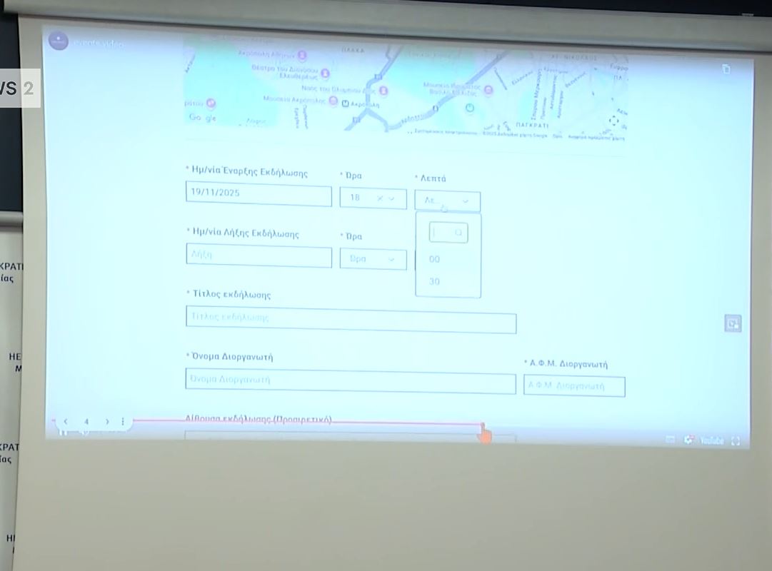 - Πλέον οι επιχειρηματίες θα μπαίνουν στο events.gov.gr και θα δηλώνουν την επιχείρησή τους με κωδικούς Taxisnet, ποιο κατάστημα έχει την ιδιωτική εκδήλωση, πότε ξεκινά και πότε τελειώνει και το όνομα του διοργανωτή του με το ΑΦΜ ώστε αυτός να το αποδεχθεί. «Στην πραγματικότητα κάνουμε ένα ιδιωτικό συμφωνητικό μέσω gov.gr» σημείωσε ο κ. Παπαστεργίου. Στο τέλος παράγεται ένα QR code ώστε η αστυνομία να ελέγχει ότι επιτρέπεται η εκδήλωση αλλά όχι η πώληση αλκοόλ σε ανήλικους.