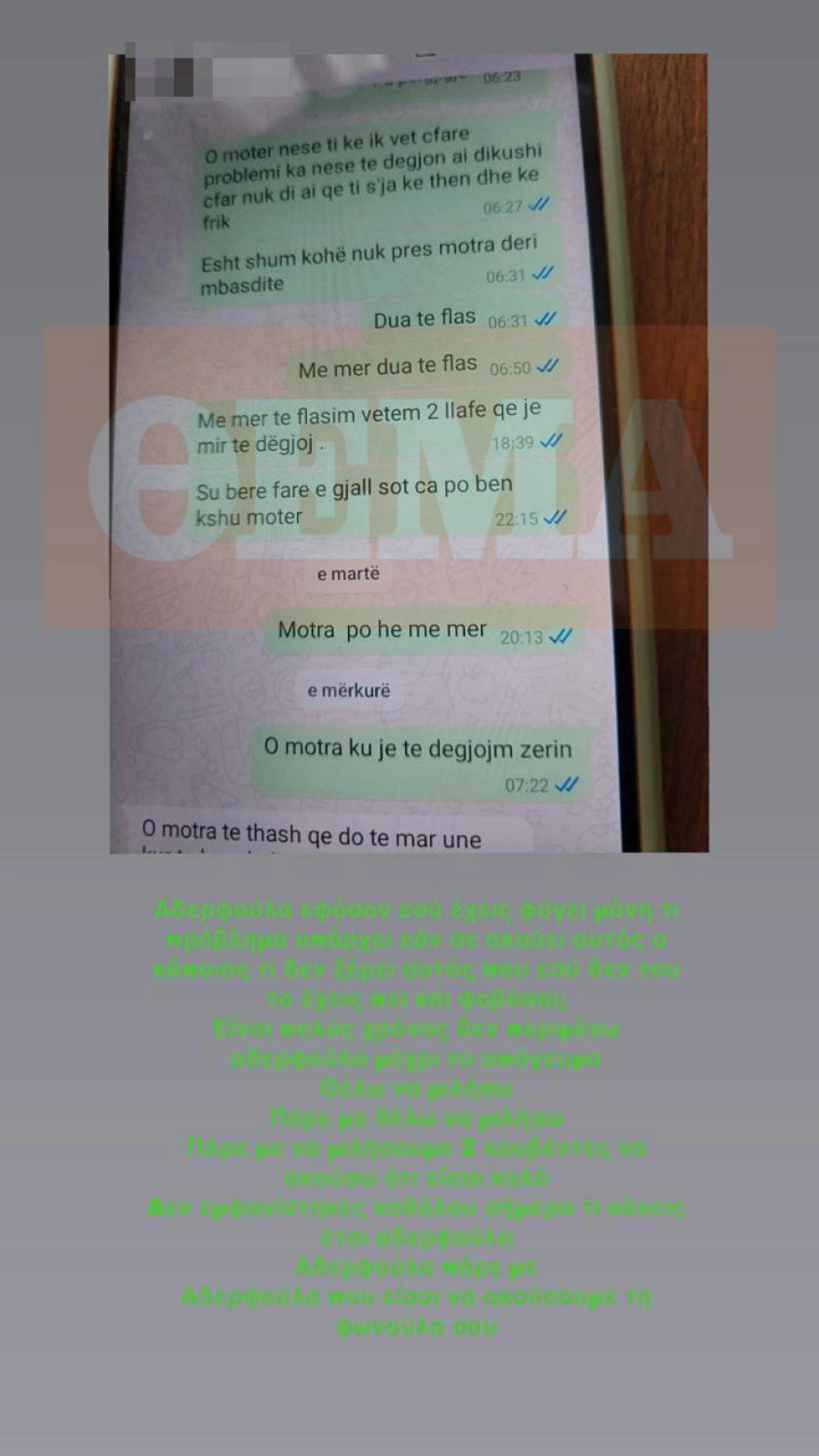 «Αδελφή, αν είσαι μόνη, ποιο είναι το πρόβλημα; Αν κάποιος σε ακούει, πες κάτι, γιατί διαφορετικά, φαίνεται ότι φοβάσαι», της γράφει. Σε άλλο μήνυμα την ξαναρωτά πού είναι, γιατί ήθελε να ακούσει τη φωνή της.