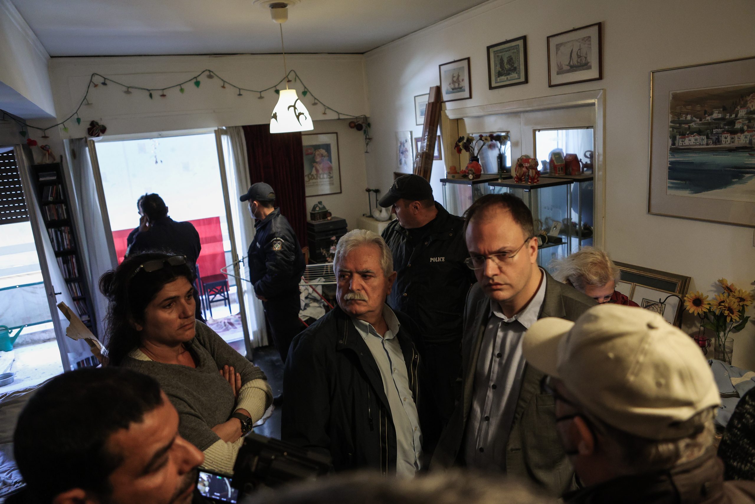 Ενταση σημειώθηκε έξω από το σπίτι της συνταξιούχου Ιωάννας Κολοβού στα Ιλίσια όταν αστυνομικοί έσπασαν την πόρτα επειδή έχασε την πρώτη της κατοικία λόγω χρεών 15.000 σε πιστωτικές κάρτες.