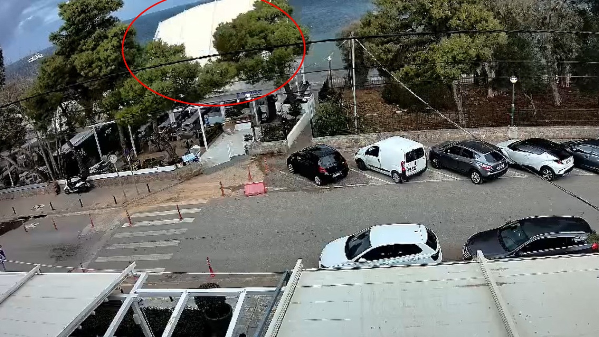 Σε βίντεο από κάμερα ασφαλείας, που δημοσίευσε το εστιατόριο, φαίνεται η στιγμή που ισχυρή ριπή ανέμου ξηλώνει ακόμα και τη σκεπή του εστιατορίου.