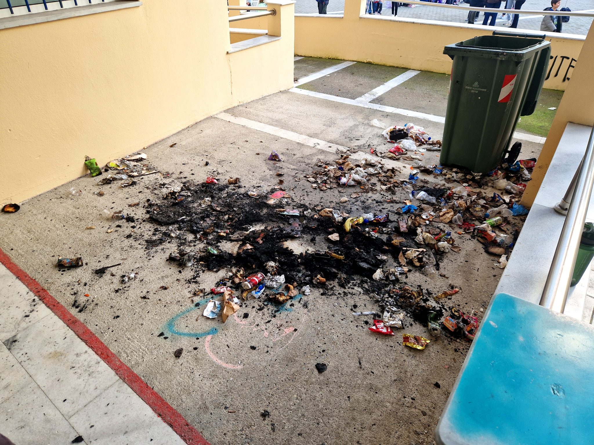 - Καταστροφή και εμπρησμός κάδων απορριμμάτων εντός του σχολείου.