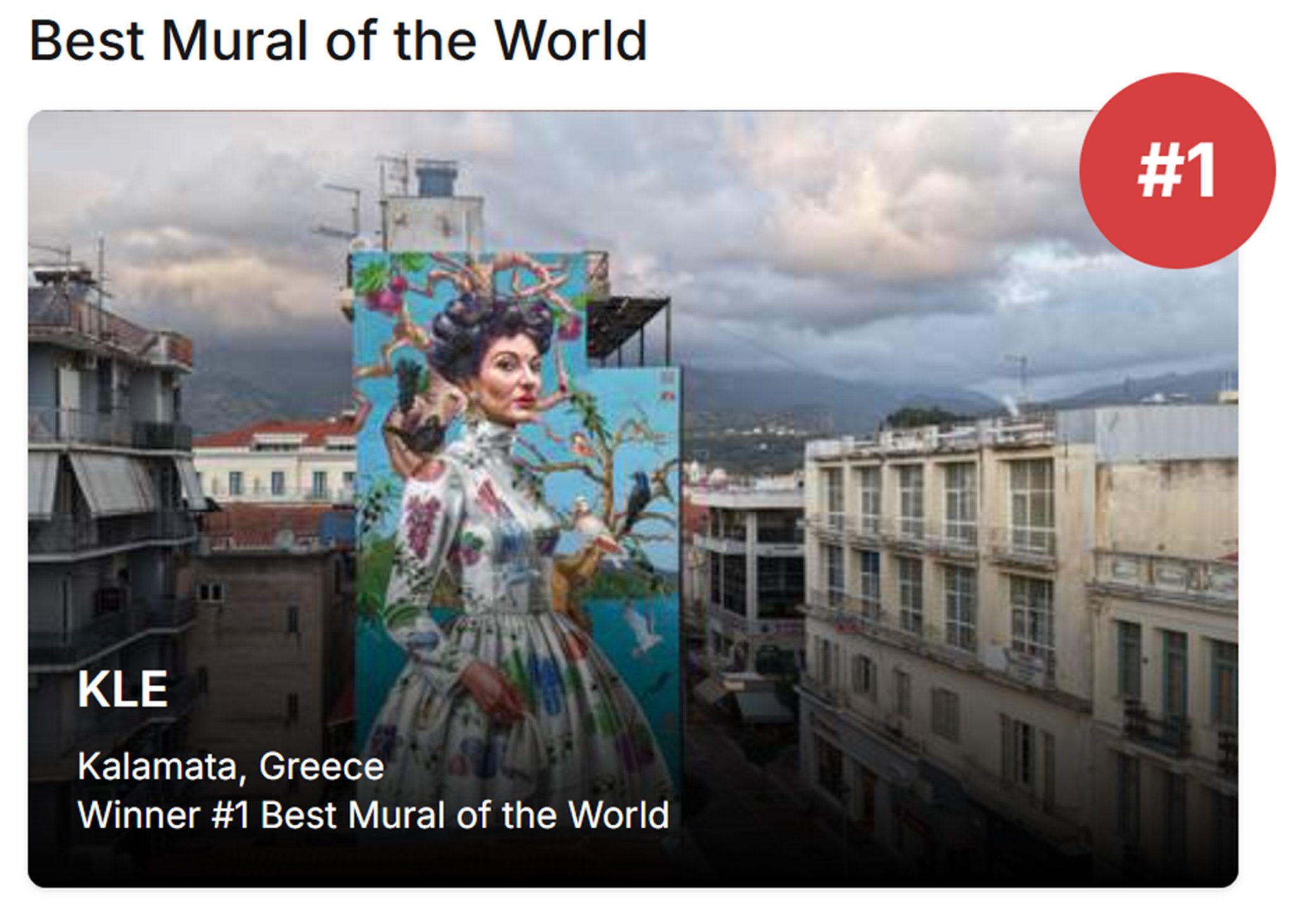 «Από έναν μικρό δρόμο της πόλης, στην κορυφή του κόσμου. Τελικά τα καταφέραμε, δώσαμε φωνή σε έναν τοίχο και ακούστηκε παντού. Ευχαριστώ το Street Art Cities για την πρόσκληση και τη φιλοξενία. Ένα μεγάλο, ζεστό ευχαριστώ σε όλους όσους ψήφισαν, μοιράστηκαν, μίλησαν για το έργο μου. Αυτή η διάκριση είναι συλλογική».