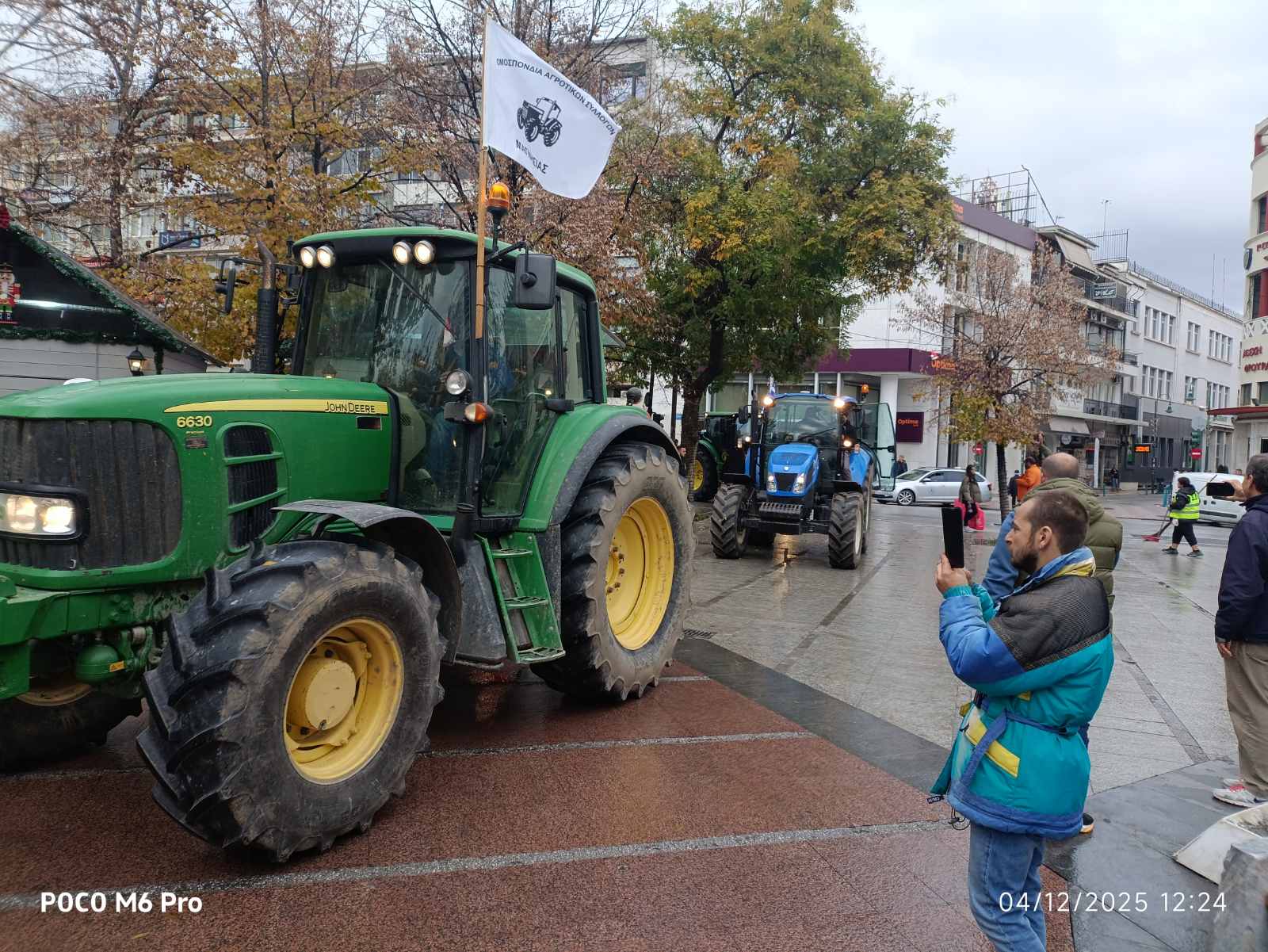 Οι αγρότες από το μπλόκο της Νίκαιας πραγματοποίησαν συλλαλητήριο με συμβολικό αριθμό τρακτέρ στην κεντρική πλατεία, ζητώντας να αθωωθούν οι δύο αγροτες.