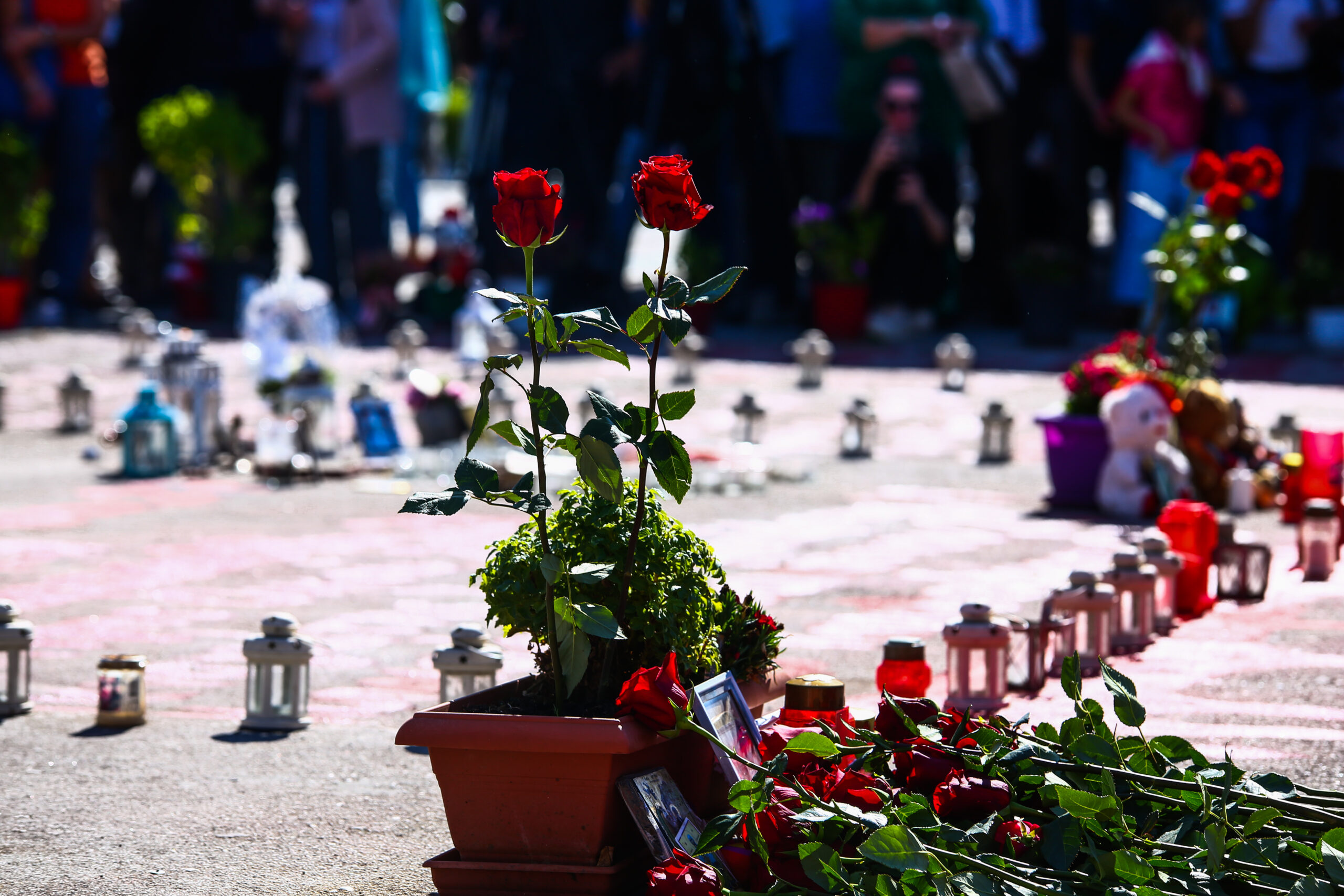 Κάτοικοι, τουρίστες και παρευρισκόμενοι στην παρέλαση άφησαν λουλούδια, αποτίοντας φόρο τιμής στη μνήμη των θυμάτων.