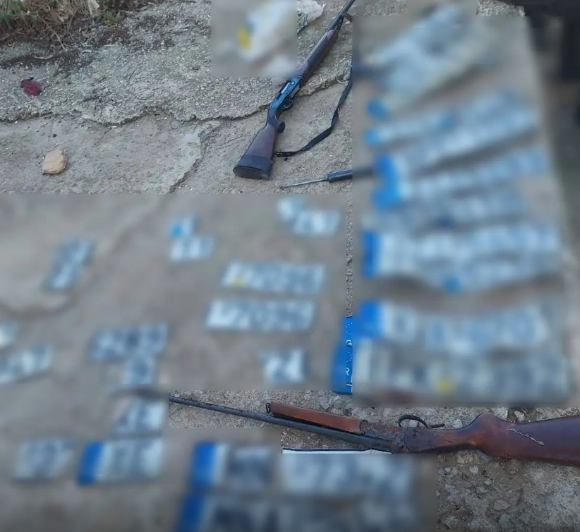 Στο πλαίσιο των ερευνών σε κατοικίες, εντοπίστηκε κρυμμένο μέσα σε σηπτική δεξαμενή οπλισμός αποτελούμενος από 2 κυνηγητικές καραμπίνες, για τις οποίες είχε δηλωθεί κλοπή το 2025 από τις περιοχές του Περάματος και της Θήβας, καθώς και πλήθος πινακίδων κυκλοφορίας, των οποίων η προέλευση διερευνάται.