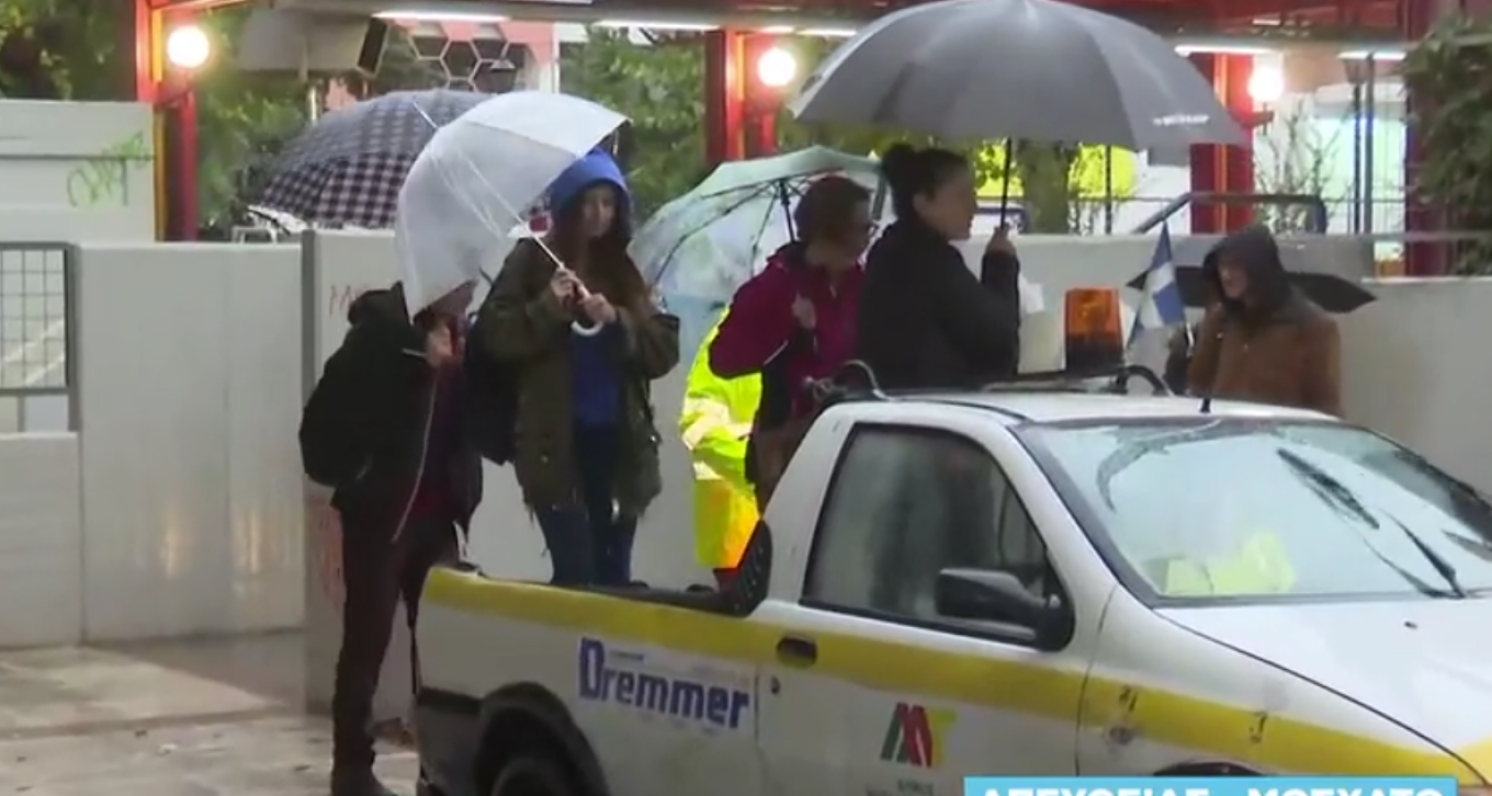 Ενδεικτικές οι εικόνες έξω από τον σταθμό του ΗΣΑΠ στο Μοσχάτο όπου επιστρατεύτηκε μέχρι και… αγροτικό για να περάσουν οι πολίτες τον δρόμο.