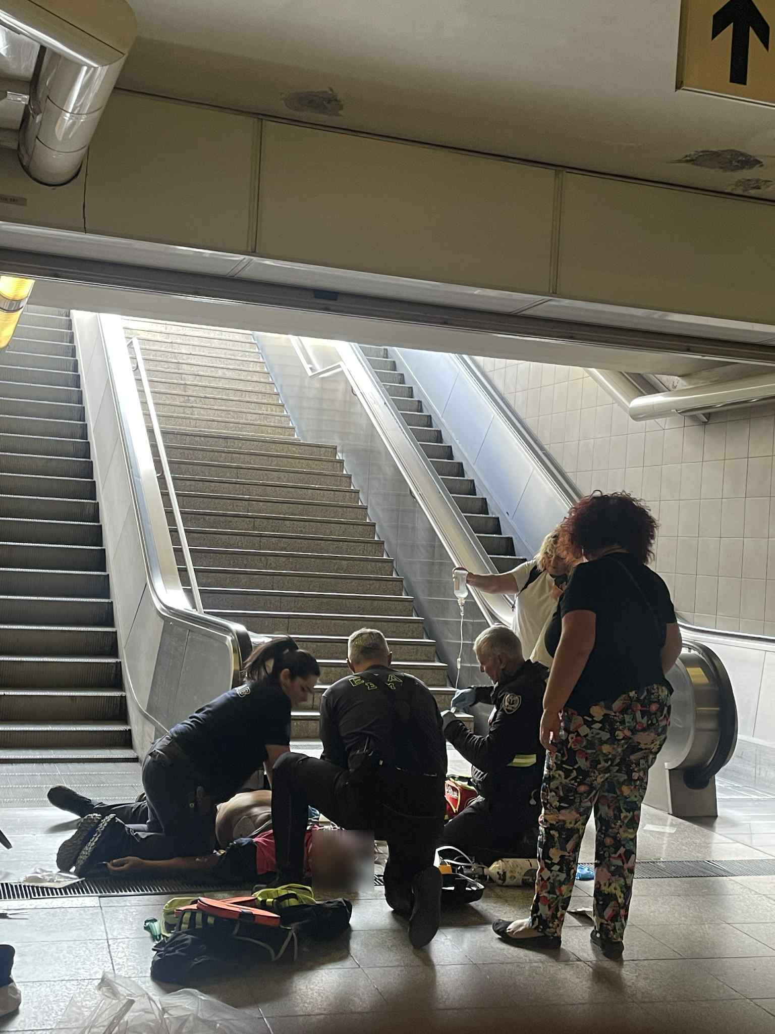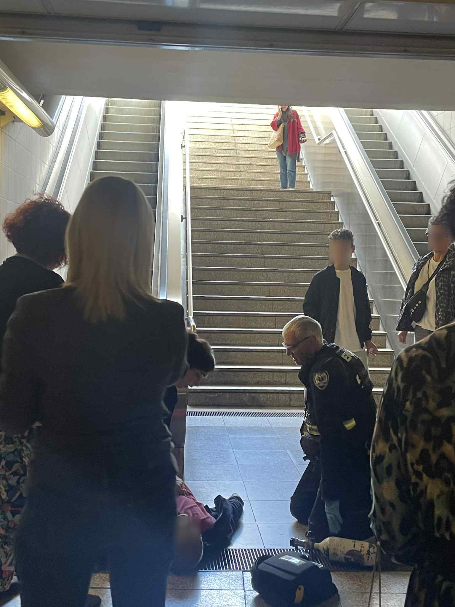 Η παρέμβαση των υπαλλήλων του Μετρό ήταν άμεση, ωστόσο στο σημείο δεν βρισκόταν κάποιος γιατρός – εκτός από 2 εθελοντές γιατρούς ανάμεσα στους επιβάτες- οι οποίοι προσέφεραν την βοήθεια τους αργότερα, με αποτέλεσμα να χαθούν κρίσιμα λεπτά. Επί μισή ώρα οι εθελοντές γιατροί προσπαθούσαν να επαναφέρουν τον άγνωστο άνδρα ο οποίος είχε μελανιάσει και φαινόταν να μην έχει σφιγγμό για μερικά λεπτά.