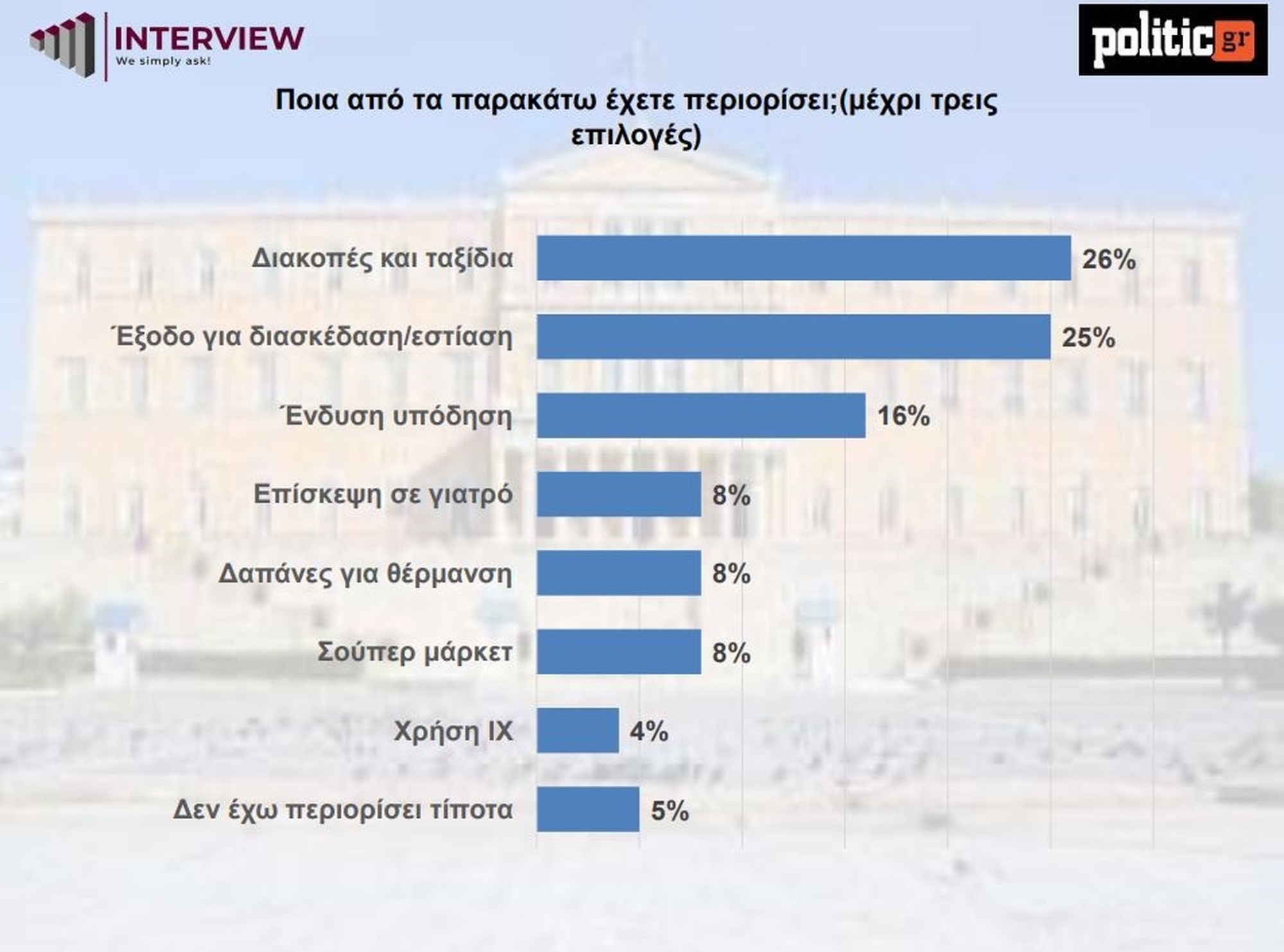 26% έχει περιορίσει διακοπές και ταξίδια,