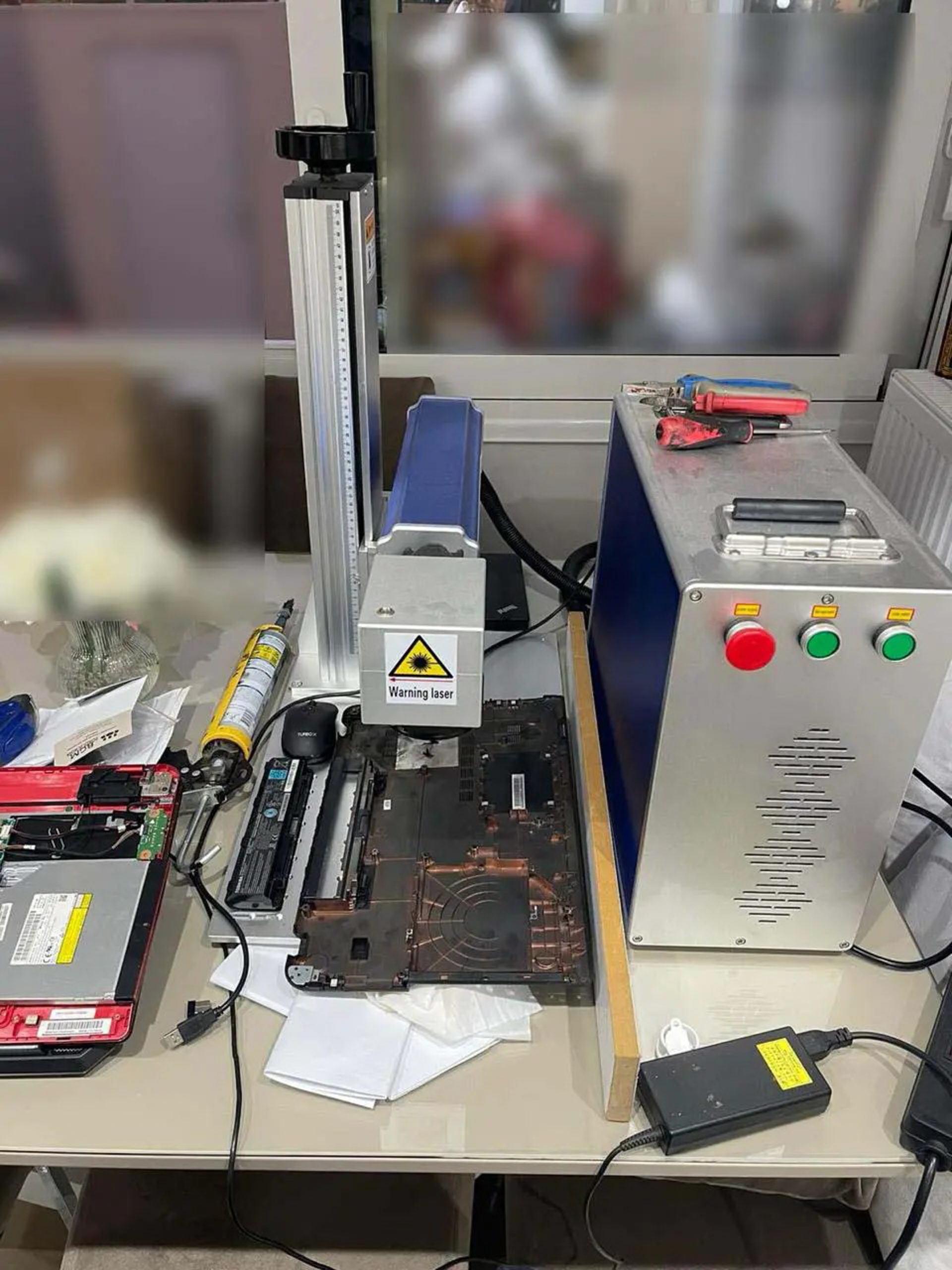 - ειδικό μηχάνημα χάραξης (laser) χαρακτηριστικών σε σκληρά αντικείμενα που χρησιμοποιείτο για χαράξεις επωνυμιών και σειριακών αριθμών όπλων, συνοδευόμενο με υπολογιστή,
