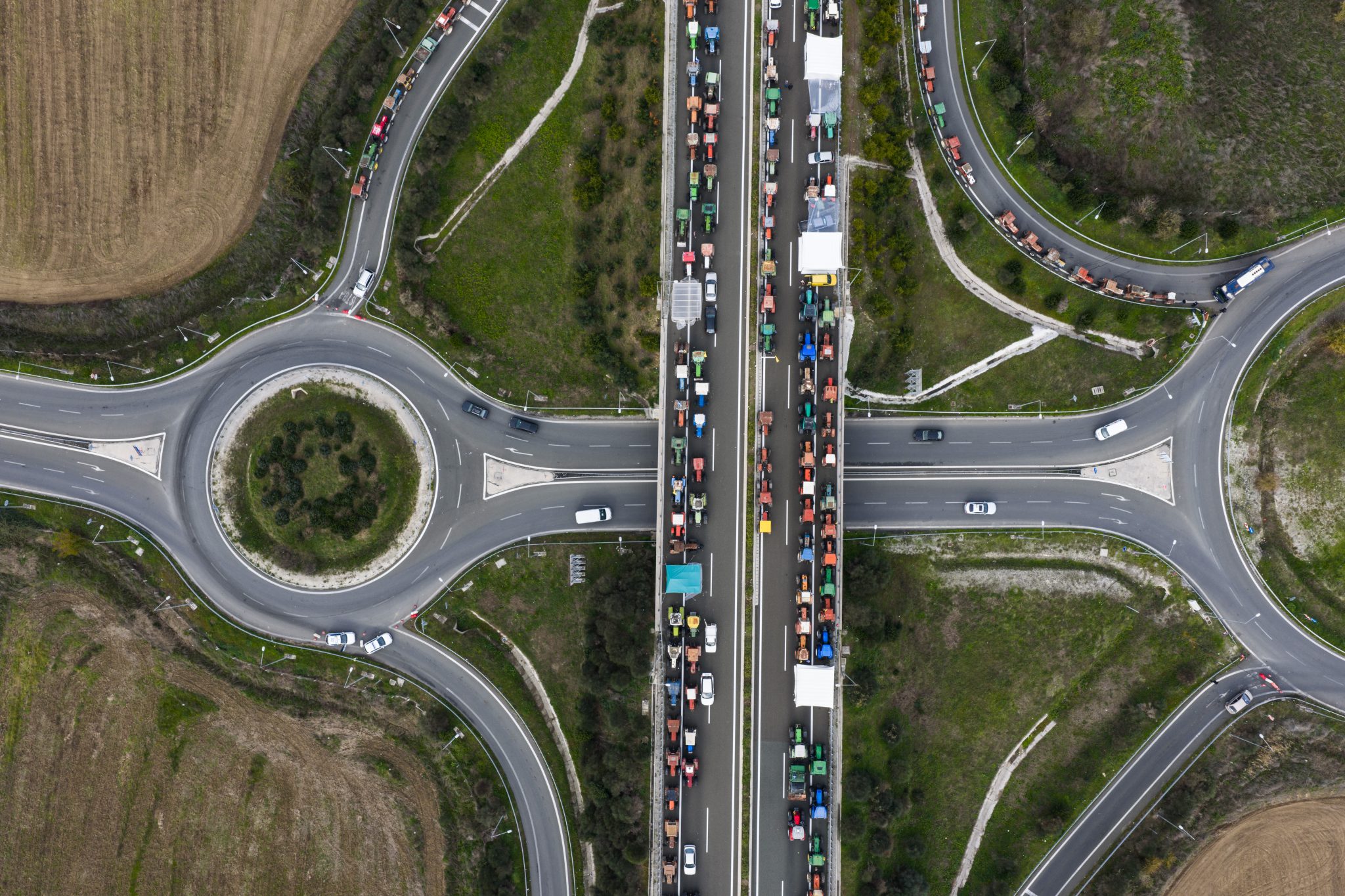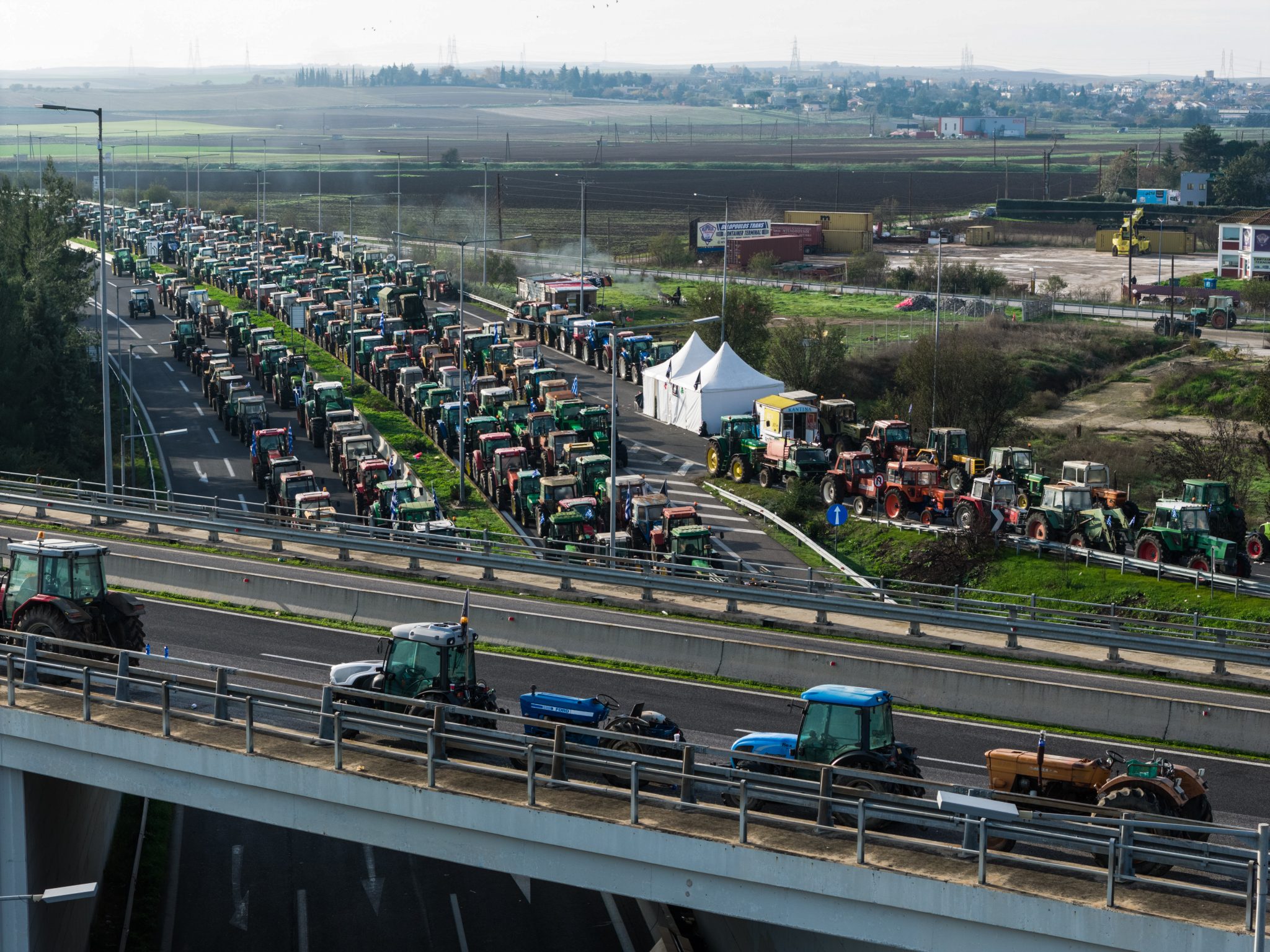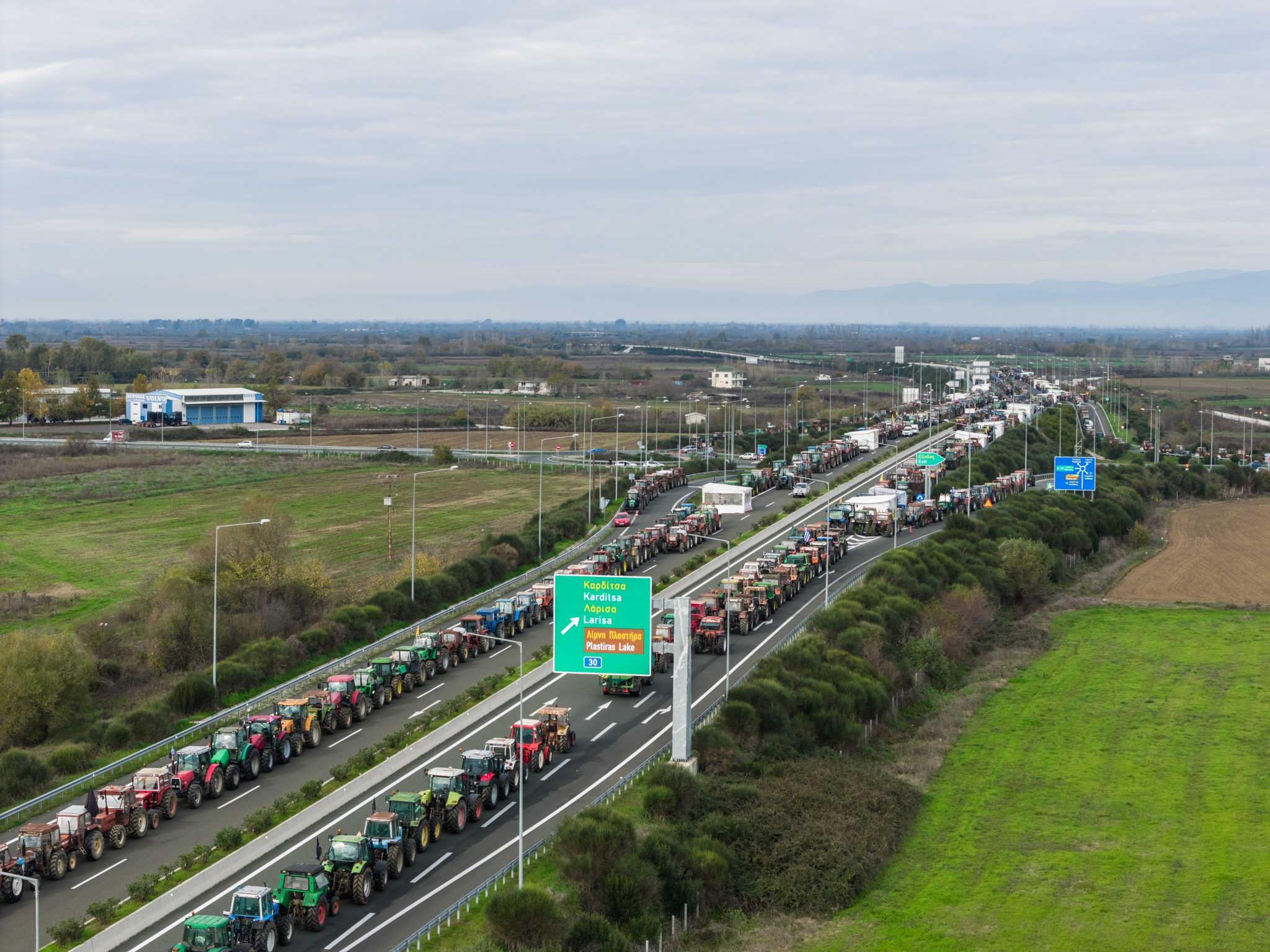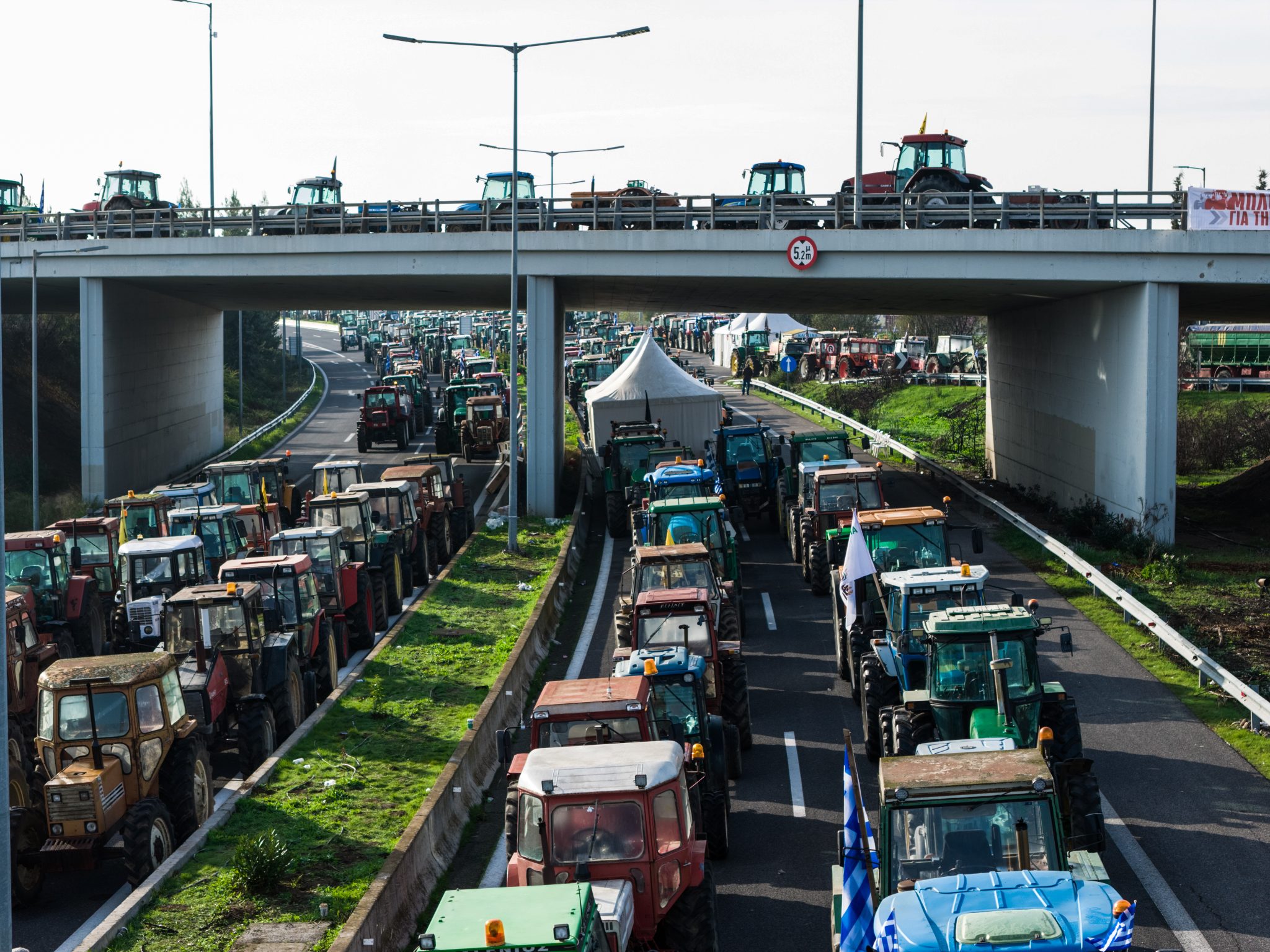 Οι αγρότες της Θεσσαλίας ενισχύουν το μπλοκ τους στον κόμβο της Νίκαιας, με τον αριθμό να αναμένεται να ξεπεράσει τα 1.000 τρακτέρ που κρατούν κλειστή την Εθνική οδό και στα δύο ρεύματα.