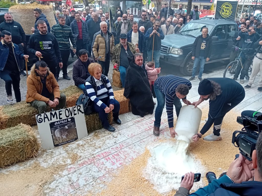 Γάλα, άχυρο και ζωοτροφές στην Κεντρική Πλατεία της Λάρισας από οργισμένους κτηνοτρόφους