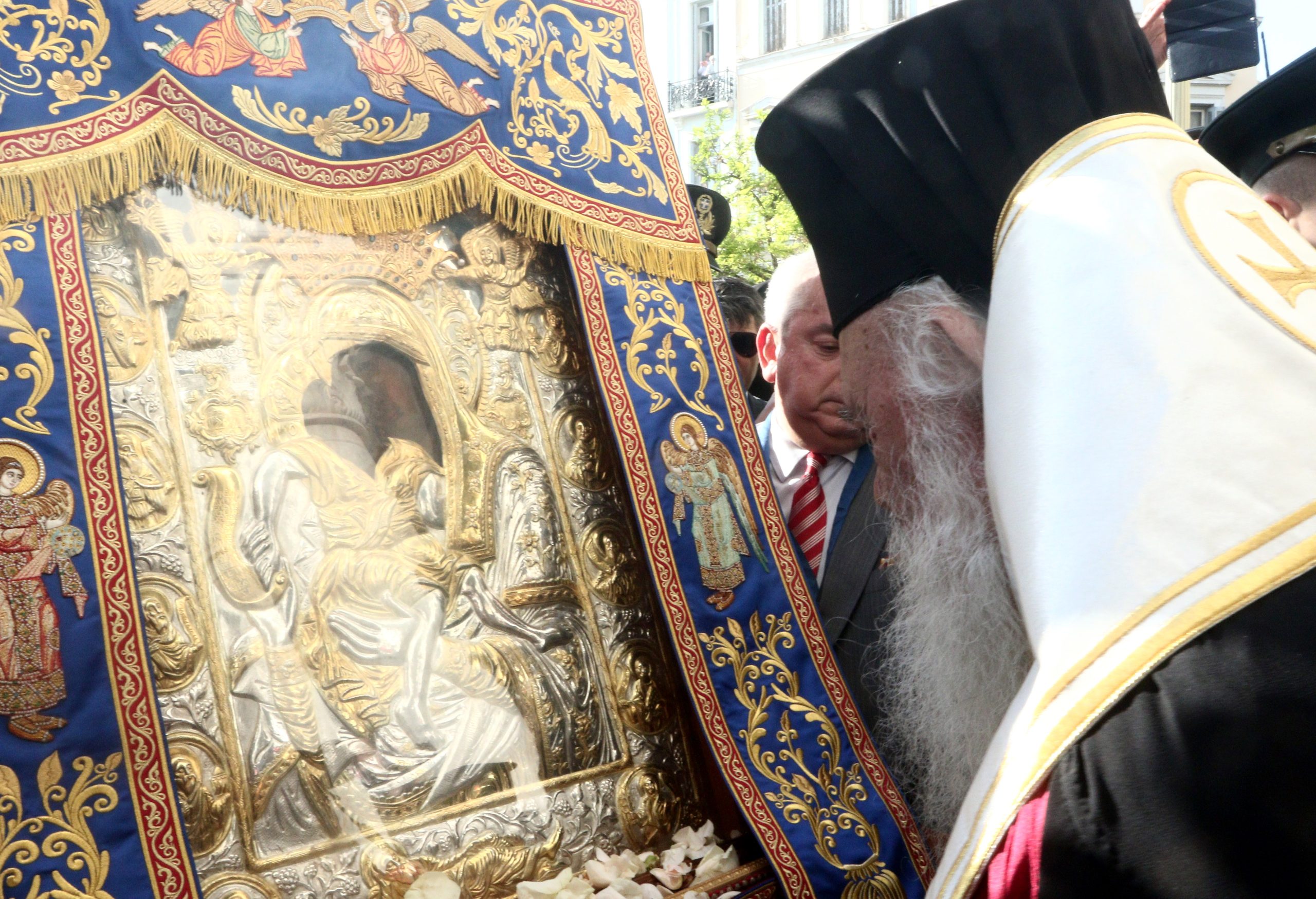 Εκατόν δέκα χρόνια μετά η εικόνα «Άξιον Εστί» που έχει βγει από το Άγιο Όρος μόνο άλλες 7 φορές στο πέρασμα των αιώνων, έφτασε στην Αθήνα το απόγευμα της Τετάρτης με τιμές αρχηγού κράτους.