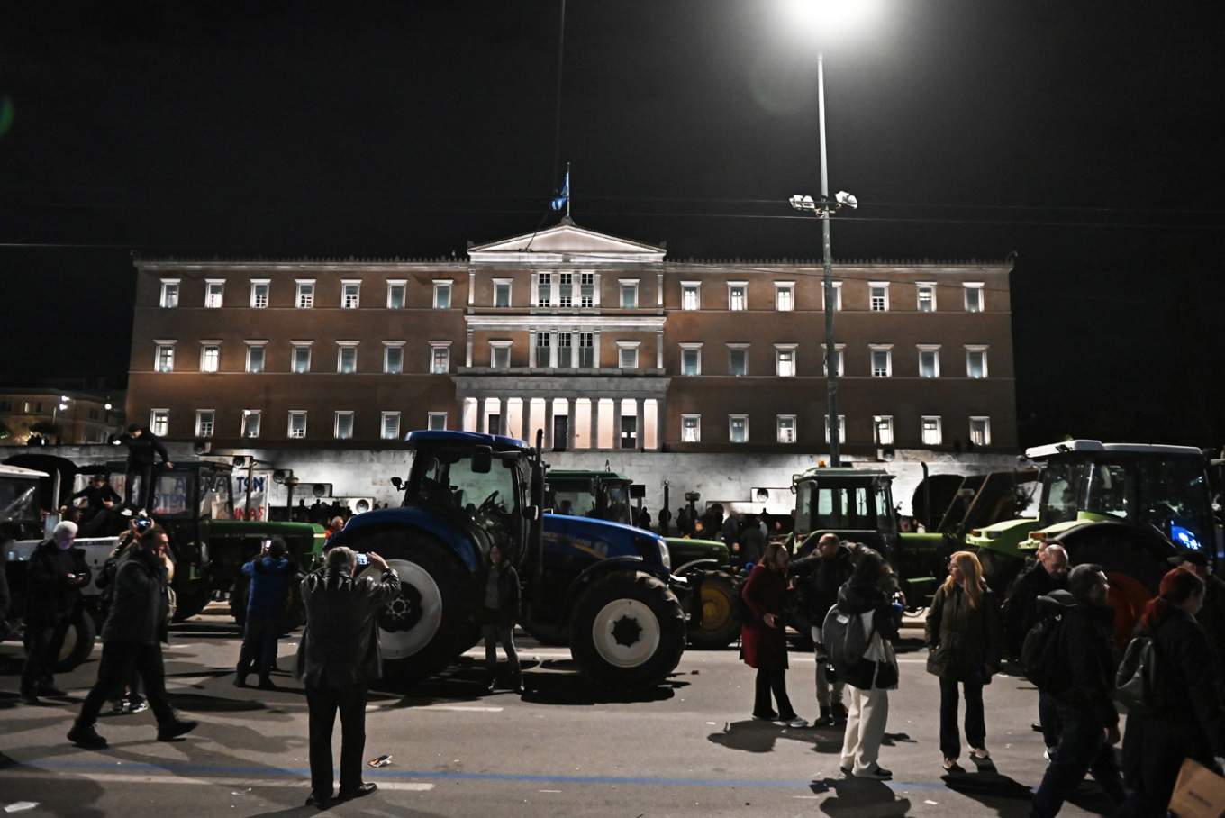 Παρατεταγμένα τα τρακτέρ έξω από τη Βουλή, στο Σύνταγμα θα διανυκτερεύσουν οι αγρότες