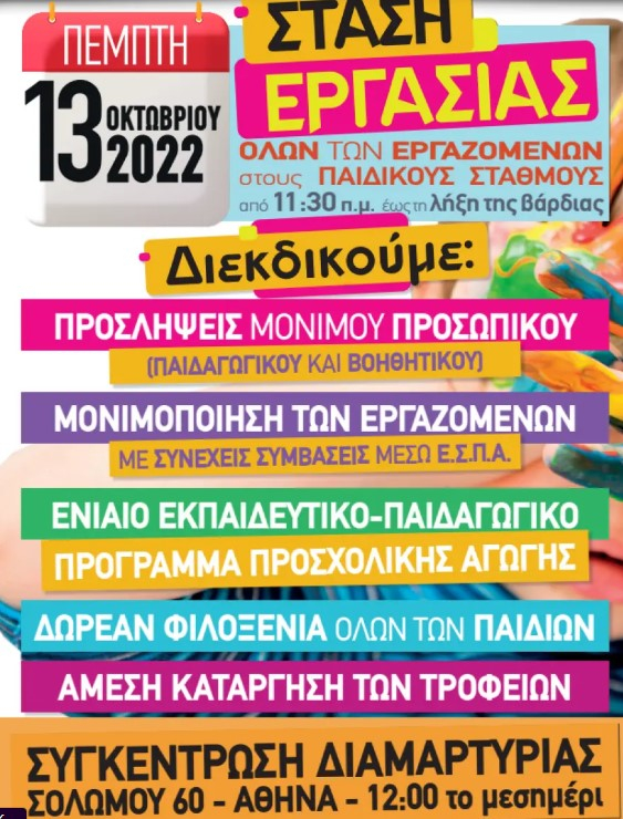 ΠΟΕ-ΟΤΑ: Στάση εργασίας σήμερα στους δημοτικούς παιδικούς σταθμούς λόγω της επέκτασης του ωραρίου λειτουργίας