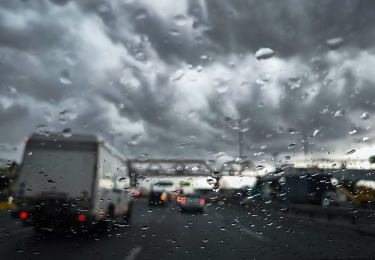- Μείνετε μέσα και ανάψτε τα προειδοποιητικά φώτα στάσης (φώτα έκτακτης ανάγκης) μέχρι να κοπάσει η καταιγίδα.
