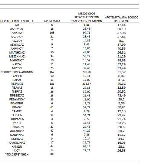 Η κατανομή των κρουσμάτων έχει ως εξής: