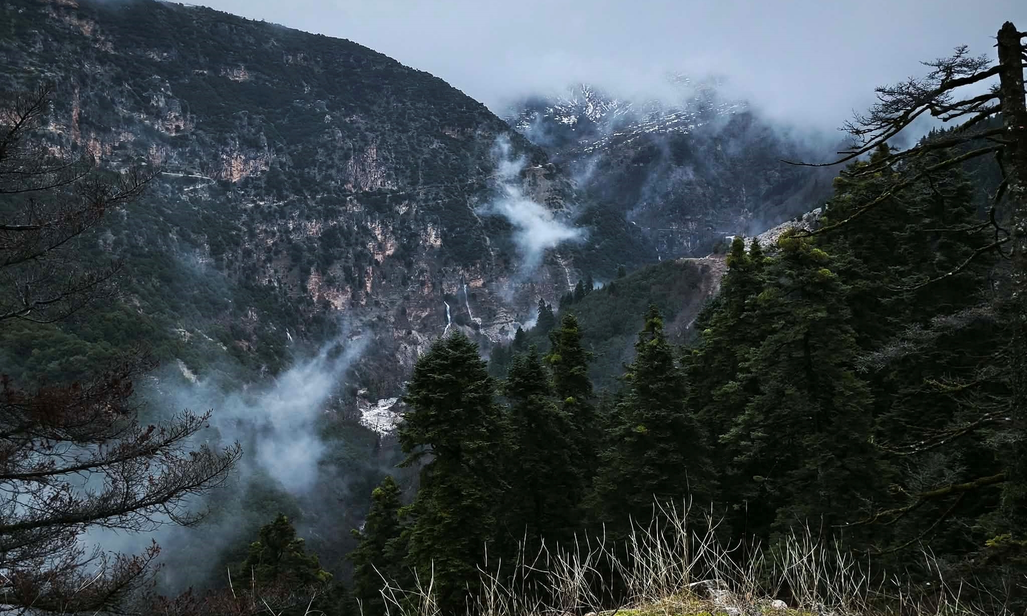 Η βροχόπτωση συνεχίζεται, ενώ στα ορεινά υπάρχει χιονόπτωση. Είκοσι σκαπτικά μηχανήματα της πολιτικής προστασίας επιχειρούν για να κρατήσουν ανοιχτούς τους δρόμους και να αποκαταστήσουν τις ζημιές.