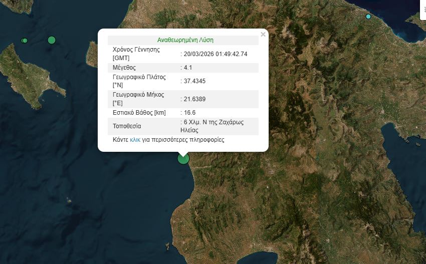 Σεισμική δόνηση 4,1 Ρίχτερ στην Ηλεία – Αισθητή σε πολλές περιοχές