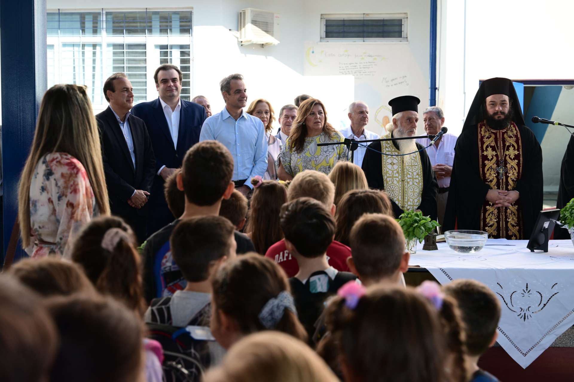 Στον αγιασμό για την έναρξη της νέας σχολικής χρονιάς παρευρέθηκε ο πρωθυπουργός, Κυριάκος Μητσοτάκης στο 2ο Δημοτικό Σχολείο Γλυφάδας.