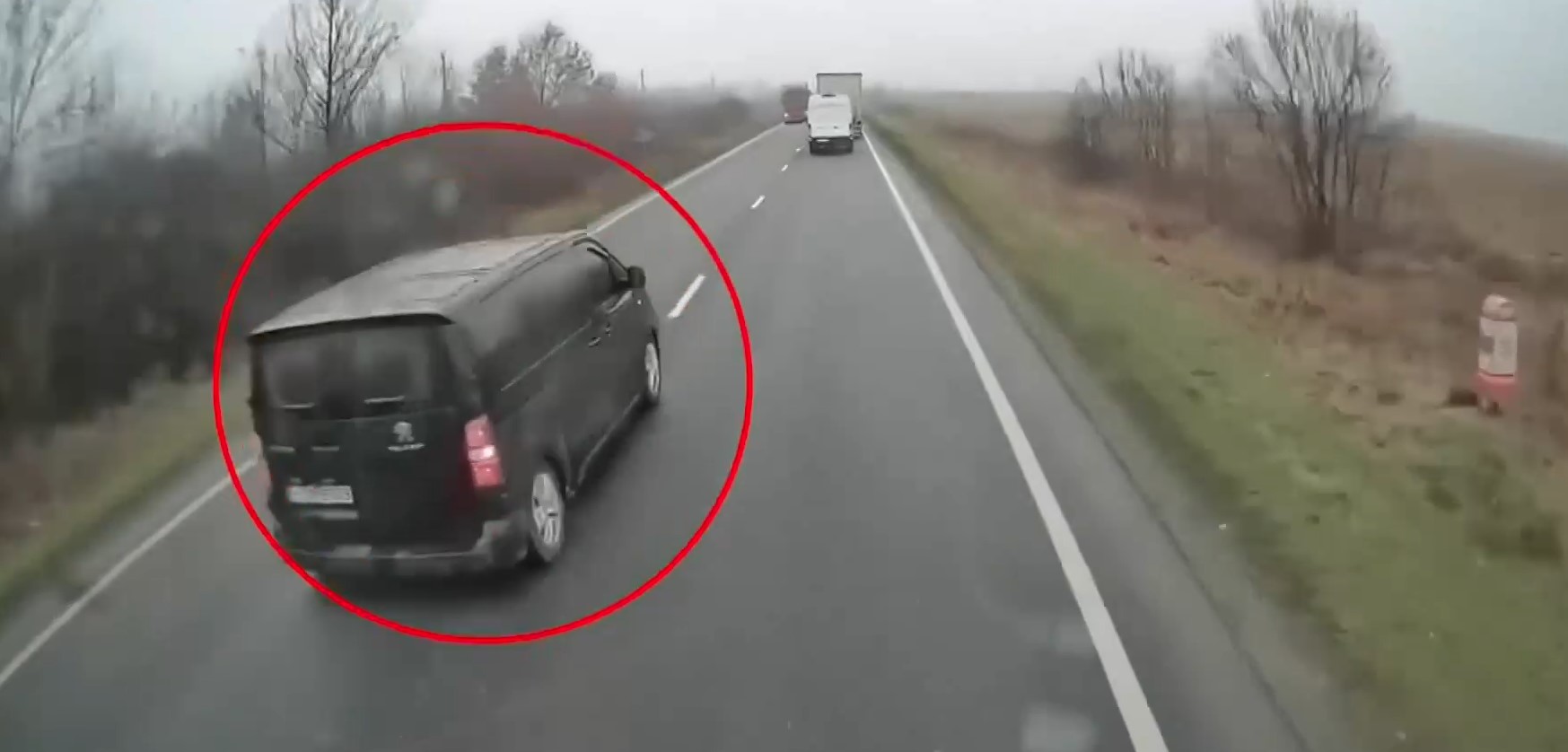 Όπως φαίνεται στο βίντεο, το μίνι βαν που μετέφερε τους οπαδούς τουΠΑΟΚ κινείται στο αντίθετο ρεύμα καθώς επιχειρεί την προσπέραση του οχήματος. Βγάζει φλας δεξιά για να επανέλθει στη λωρίδα του και κινείται ελαφρώς προς την κατεύθυνση αυτή.