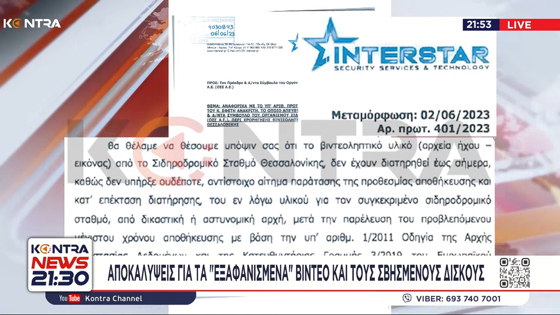 Τέμπη: Αποκαλύψεις για τα σβησμένα βίντεο και τους διαγραμμένους δίσκους ΟΣΕ και Interstar στο Kontra