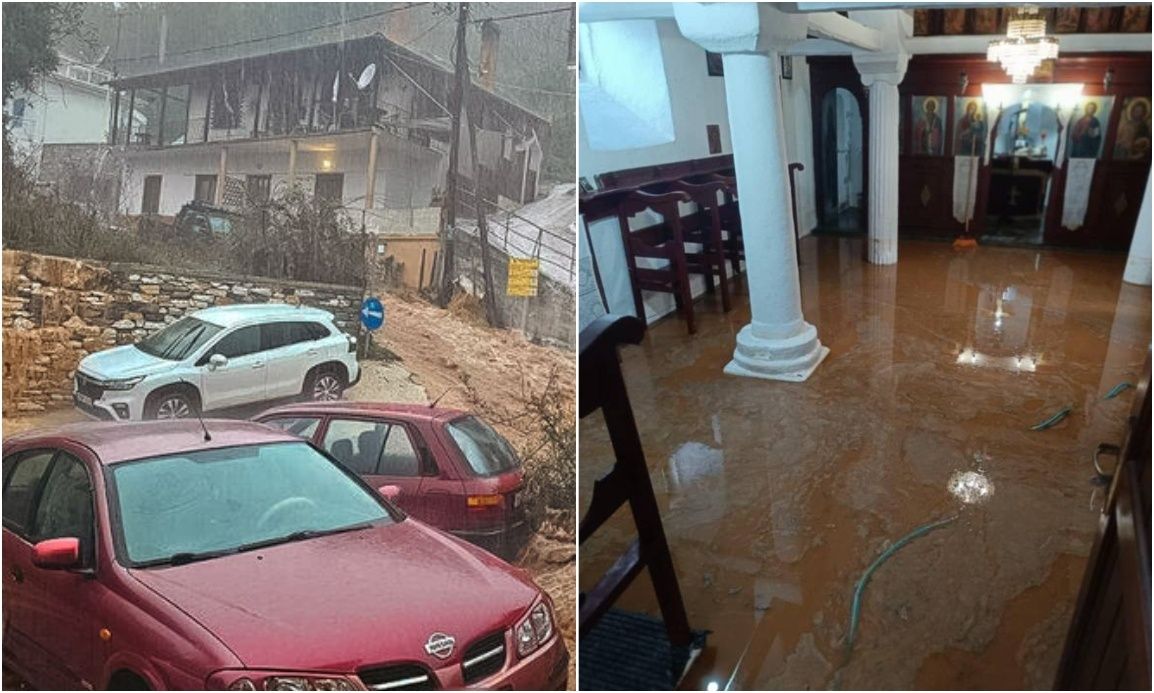 Θάσος: Καταστροφές σε Παναγία και Ποταμιά από τα νερά των χειμάρρων – Πλημμύρισε και εκκλησία