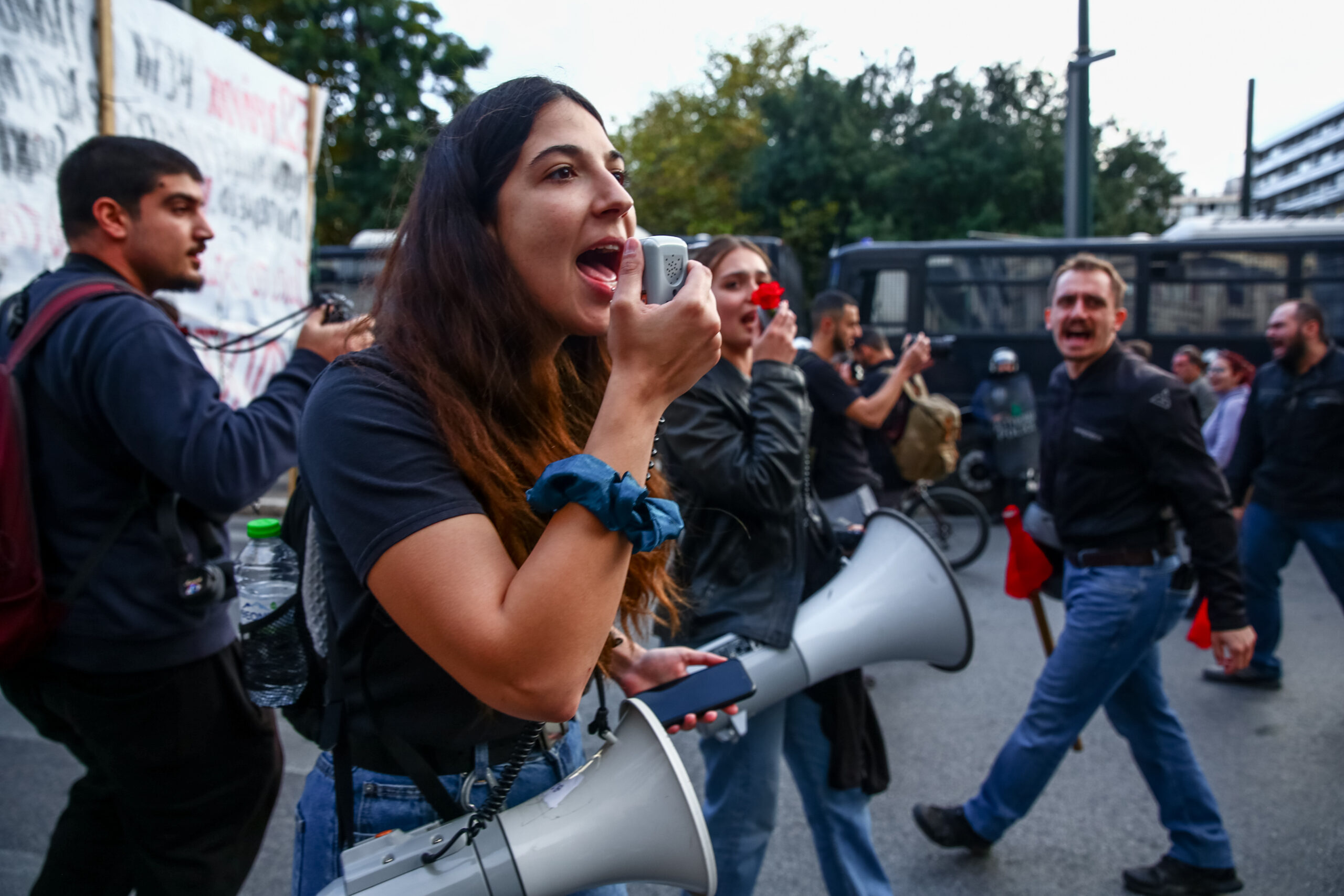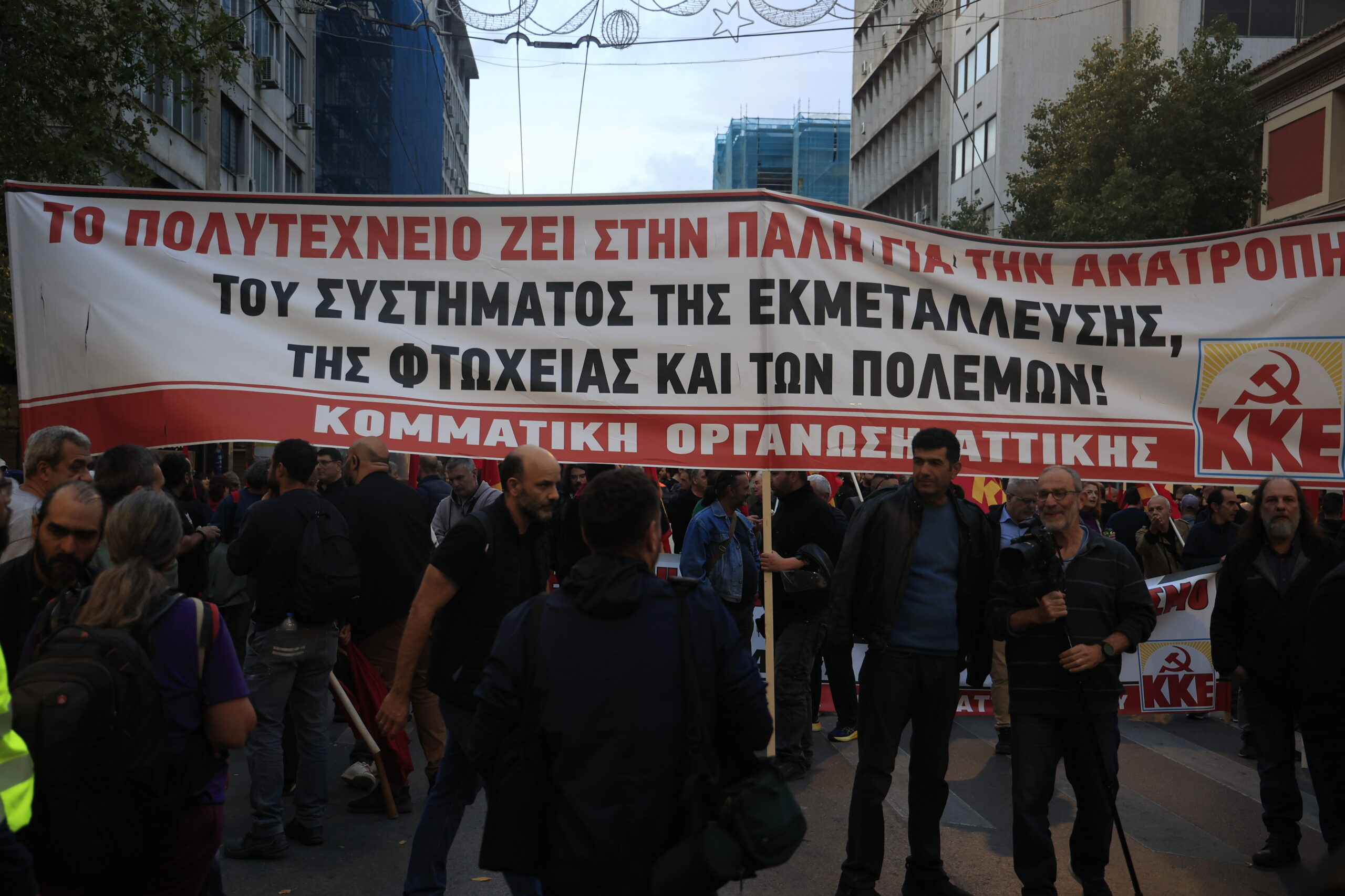 Με μεγάλη συμμετοχή πραγματοποιείται η πορεία για την 52η επέτειο του Πολυτεχνείου, ξεκινώντας από το Σύνταγμα και με προορισμό την Αμερικανική Πρεσβεία. Η ιστορική, αιματοβαμμένη σημαία του Πολυτεχνείου μεταφέρθηκε στο μπλοκ των φοιτητών, πραγματοποιώντας πρώτα μια συμβολική στάση στο άτυπο μνημείο με τα ονόματα των θυμάτων των Τεμπών. Παρά τις στιγμές έντασης και συνθημάτων όπως «αδέλφια ζείτε, εσείς μας οδηγείτε», η πορεία συνεχίστηκε χωρίς επεισόδια.