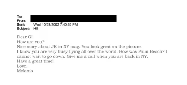 Melania Trump – Σε email του 2002, συγχαίρει την «G» (πιθανώς Ghislaine Maxwell) για ένα προφίλ του Έπστιν σε περιοδικό.