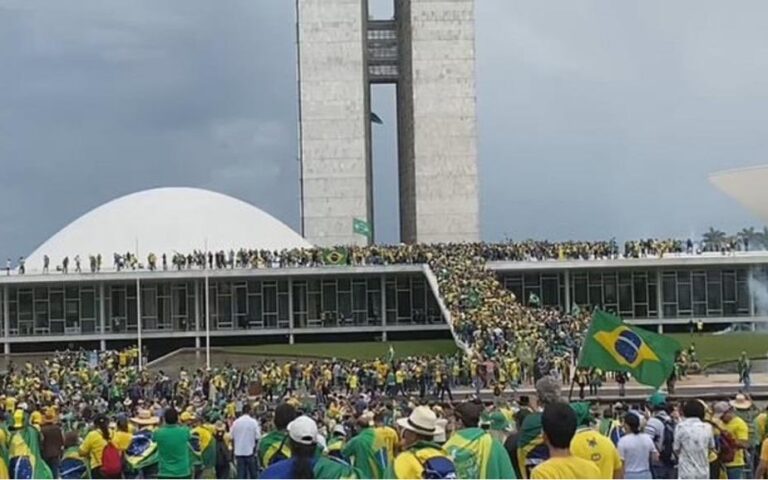 Τα εντυπωσιακά πλάνα, που θυμίζουν την εισβολή στο Καπιτώλιο των ΗΠΑ, δείχνουν ένα πλήθος ανθρώπων να κατευθύνεται στο Κογκρέσο. Στο κτίριο του Κογκρέσου στεγάζονται η Βουλή και η Γερουσία της Βραζιλίας.