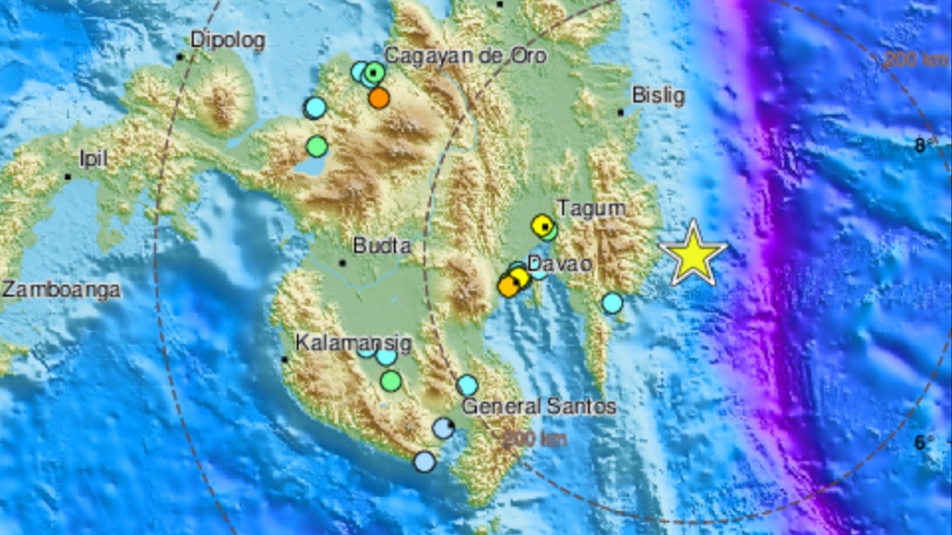 Ισχυρή σεισμική δόνηση μεγέθους 7,2 βαθμών της κλίμακας Ρίστερ σημειώθηκε λίγο πριν της 5 τα ξημερώματα ώρα Ελλάδας (09:43 τοπική ώρα) στην περιοχή Μιντανάο στις Φιλιππίνες.