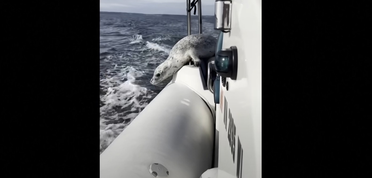 Αλλά καθώς οι όρκες πλησίαζαν το σκάφος, η Drucker και η ομάδα της συνειδητοποίησαν ότι η ομάδα εξακολουθούσε να καταδιώκει τη φώκια. Σύμφωνα με τους κανονισμούς για σκάφη κοντά σε άγρια θαλάσσια ζώα, είχαν σβήσει τη μηχανή για να αποτρέψουν οποιονδήποτε τραυματισμό των φαλαινών. Η φώκια σκαρφάλωσε έξω από το νερό και επάνω σε μια πλατφόρμα κολύμβησης στην πρύμνη του σκάφους, κοντά στη μηχανή – διεκδικώντας την ως σωσίβια λέμβο, κατά κάποιον τρόπο.