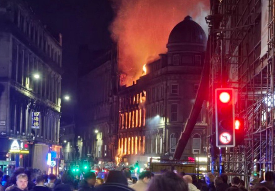 BREAKING: The structure ablaze on Union Street, Glasgow, Scotland has partly collapsed after firefighters were unable to contain the major fire. pic.twitter.com/6dWCgWi4Ub