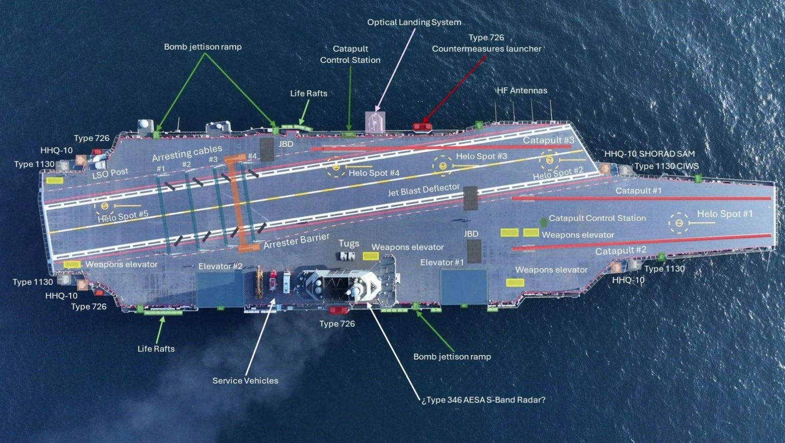 Το Fujian, πολύ πιο σύγχρονο από τα άλλα δύο σκάφη του είδους που διέθετε το κινεζικό ΠΝ, είναι εφοδιασμένο με σύστημα καταπέλτη που επιτρέπει να απονηώνεται πολύ μεγαλύτερο εύρος αεροσκαφών και δη με μεγαλύτερα φορτία, ενώ έχει επίσης πολύ μεγαλύτερη ακτίνα δράσης από τα άλλα δυο, σύμφωνα με το πρακτορείο.
