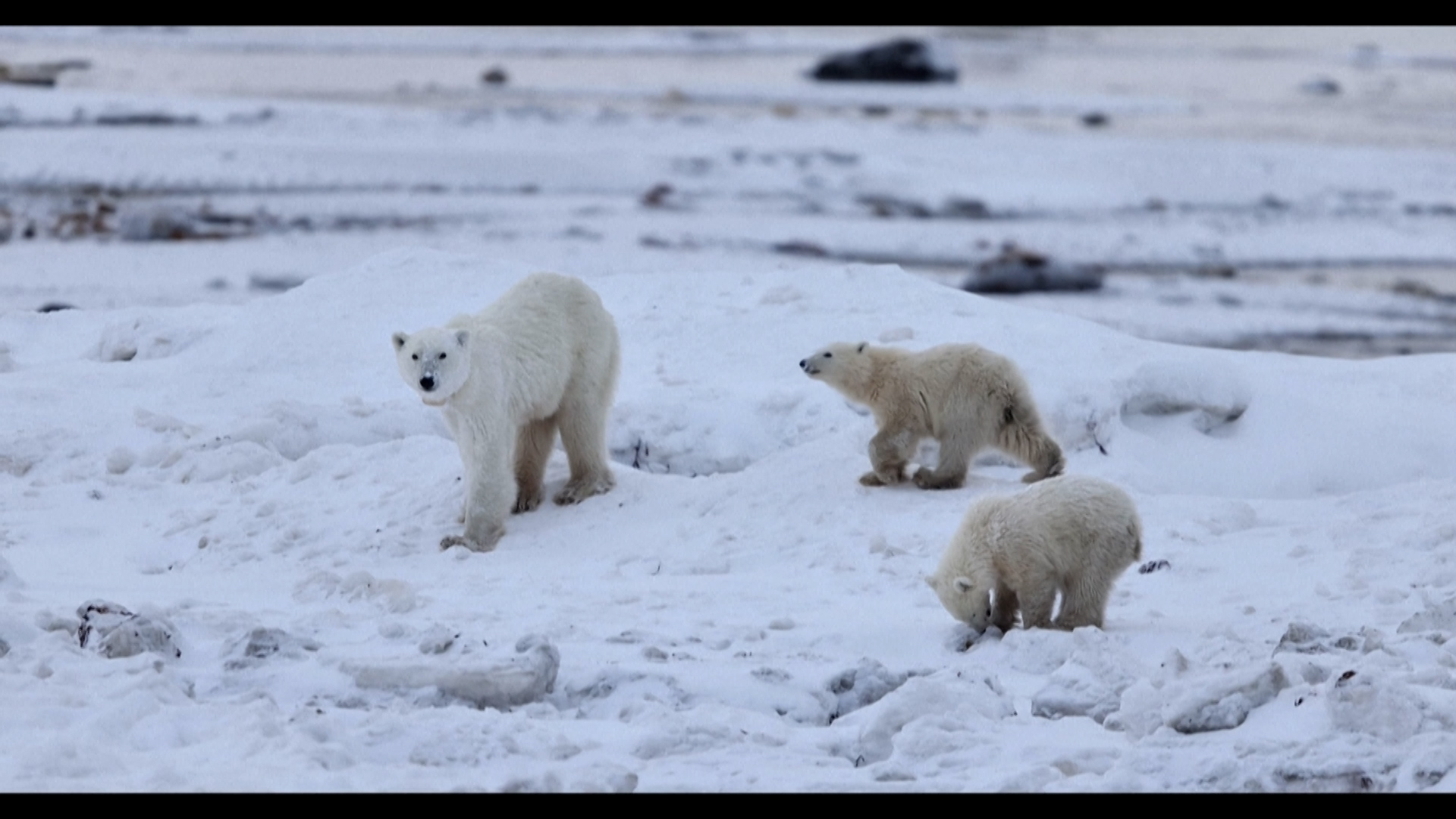 Η πεντάχρονη μητέρα αρκούδα και τα αρκουδάκια της, ηλικίας 10-11 μηνών, παρατηρήθηκαν και καταγράφηκαν με κάμερα κατά τη διάρκεια της ετήσιας μετανάστευσης των πολικών αρκούδων κατά μήκος της δυτικής ακτής του Hudson Bay κοντά στο Churchill, Manitoba, μια πόλη γνωστή για τον πληθυσμό των πολικών αρκούδων.