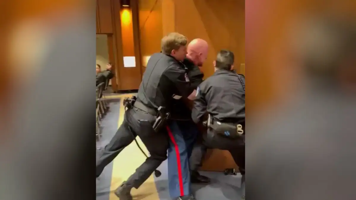 Ο διαδηλωτής που φέρεται πως είναι και βετεράνος πεζοναύτης, φαίνεται να προβάλει αντίσταση. Τότε, ο επίσης γερουσιαστής, Tim Sheehy αποφασίζει να αναλάβει δράση και να εμπλακεί.