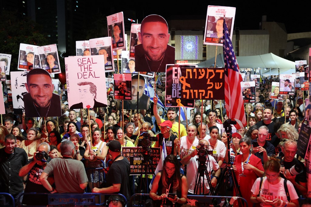 Χιλιάδες ήταν οι Ισραηλινοί που συγκεντρώθηκαν στην Πλατεία Ομήρων -μεταξύ αυτών και συγγενείς ομήρων- και ζήτησαν από την κυβέρνησή τους να κλείσει τη συμφωνία για την απελευθέρωση όλων των ομήρων.