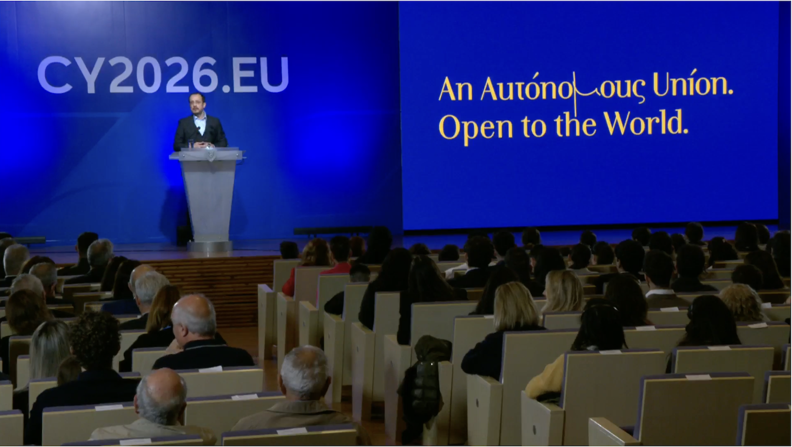 Δεκατέσσερις φορές, αναφέρθηκε ο Πρόεδρος της Κυπριακής Δημοκρατίας, Νίκος Χριστοδουλίδης, στο σύνθημα «αυτόνομη Ένωση ανοικτή στον κόσμο», κατά την παρουσίαση των προτεραιοτήτων της κυπριακής προεδρίας του Συμβουλίου της Ευρωπαϊκής Ένωσης, που θα διαρκέσει από την 1η Ιανουρίου μέχρι την 30η Ιουνίου 2026.
