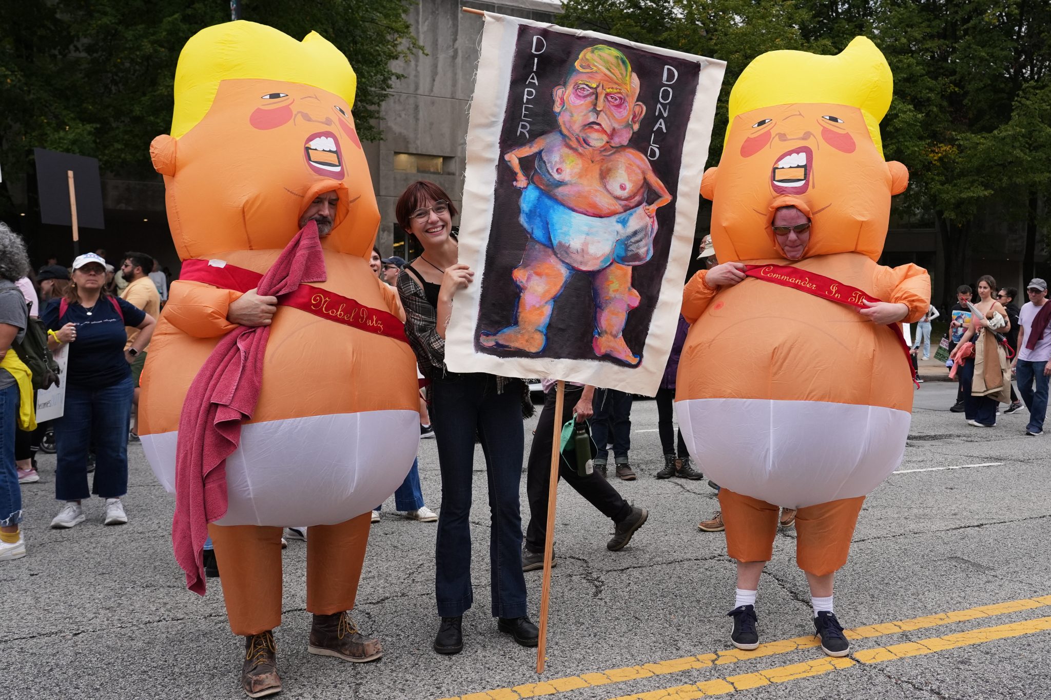 Οι διαδηλωτές καταδίκασαν τις, όπως τις αποκάλεσαν, σκληρές πρακτικές του Ρεπουμπλικανού προέδρου, συμπεριλαμβανομένων των επιθέσεων εναντίον των μέσων ενημέρωσης, των πολιτικών αντιπάλων και των μεταναστών χωρίς χαρτιά. «Ποτέ δεν πίστευα ότι θα ζούσα για να δω το θάνατο της χώρας μου ως δημοκρατία», δήλωσε η 69χρονη συνταξιούχος Κόλιν Χόφμαν στο AFP, καθώς διαδήλωνε στη Μπροντγουέι της Νέας Υόρκης. «Βρισκόμαστε σε κρίση – η σκληρότητα αυτού του καθεστώτος, ο αυταρχισμός. Αισθάνομαι ότι δεν μπορώ να κάθομαι στο σπίτι και να μην κάνω τίποτα». Στο Λος Άντζελες, οι διαδηλωτές έβαλαν να επιπλέει ένα γιγαντιαίο μπαλόνι με τον Τραμπ να φοράει πάνα.