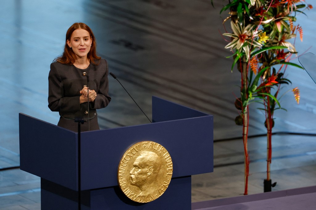 Η Άνα Κορίνα Σόσα Ματσάδο, κόρη της Μαρίας Ματσάδο, παρέλαβε εκ μέρους της το Βραβείο Νόμπελ Ειρήνης 2025 σε τελετή στο Όσλο την Τετάρτη.