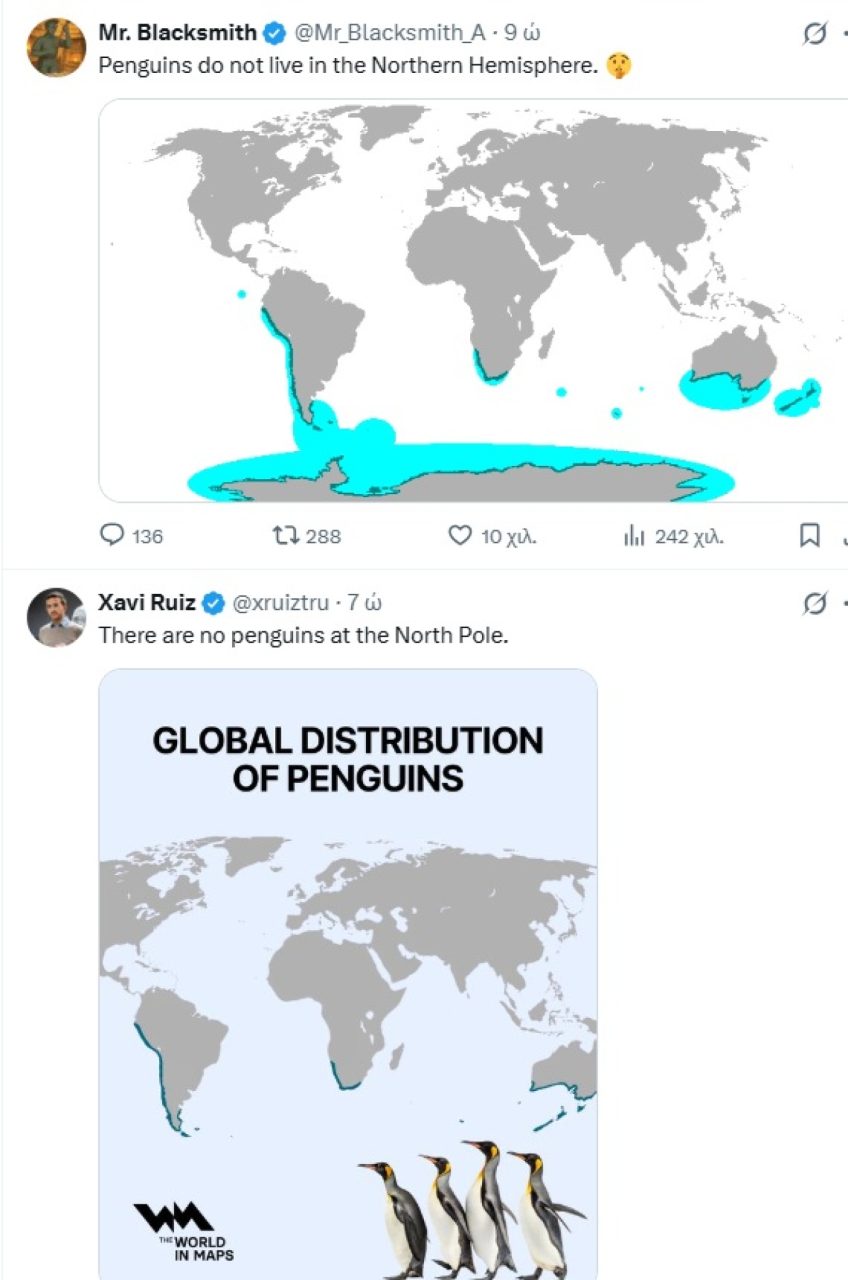 Οι αντιδράσεις γρήγορα πλημμύρισαν το X, με πολλούς χρήστες να επισημαίνουν το γεωγραφικό λάθος της εμφάνισης του πιγκουίνου στη Γροιλανδία.