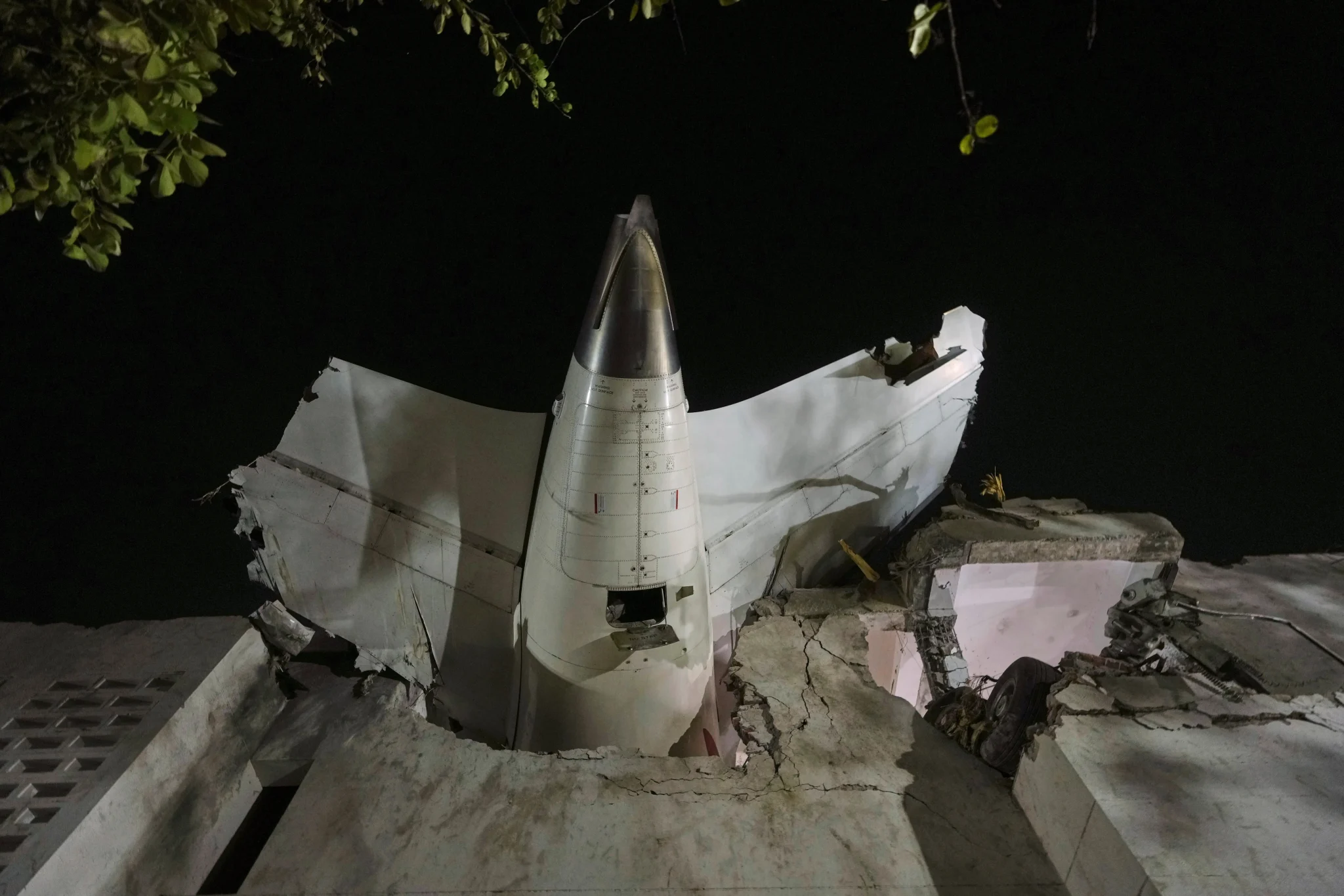 Η ουρά του αεροσκάφους της Air India προεξέχει από κτίριο στην Αχμενταμπάντ, μετά από τη συντριβή που σόκαρε τον πλανήτη. Το αεροπλάνο έγινε φέρετρο για 290 ανθρώπους στις 12 Ιουνίου 2025. Έπεσε σε οικοδομικό συγκρότημα που στεγάζει εστία φοιτητών.