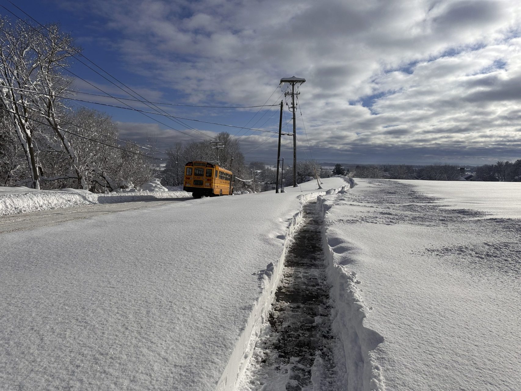 Εν μέσω σφοδρής χιονόπτωσης, αεροπλάνο προσγειώνεται στο αεροδρόμιο Φρέντερικ Ντάγκλας στο Ρότσεστερ. Χιλιάδες πτήσεις έχουν ήδη ακυρωθεί εξαιτίας της χειμερινής καταιγίδας, ματαιώνοντας τα σχέδια των ταξιδιωτών στην κορύφωση της εορταστικής περιόδου. Σύμφωνα με τους μετεωρολόγους, οι χιονοπτώσεις θα είναι σε ύφεση από τις βραδινές ώρες.