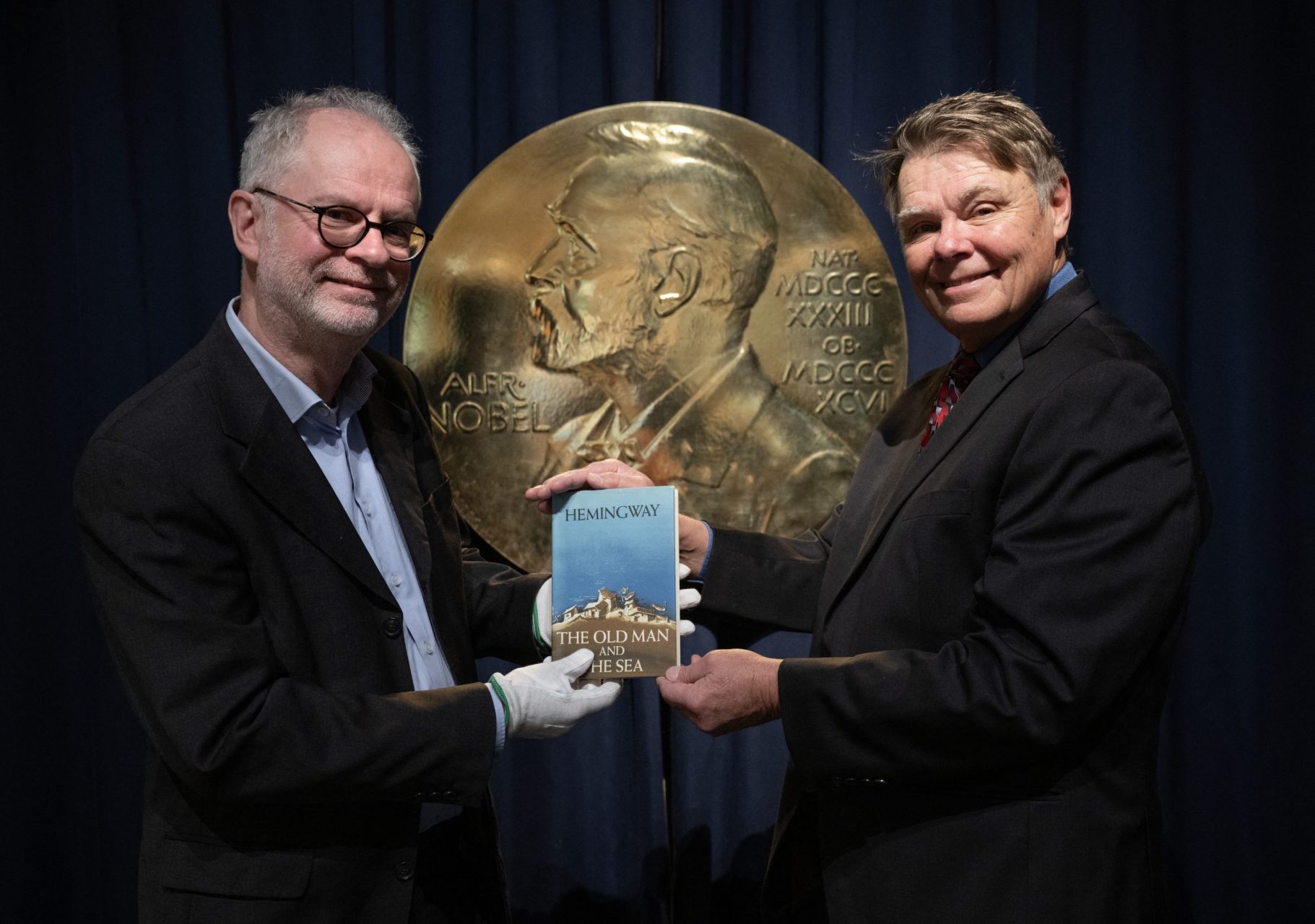 Ένα ιδιαίτερης ιστορικής αξίας αντίτυπο του βιβλίου «Ο Γέρος και η Θάλασσα» του Έρνεστ Χέμινγουεϊ παραδόθηκε στο Μουσείο του Βραβείου Νόμπελ στη Στοκχόλμη από τον Αμερικανό μελετητή του έργου του συγγραφέα, Κέρτις Ντεμπεργκ.