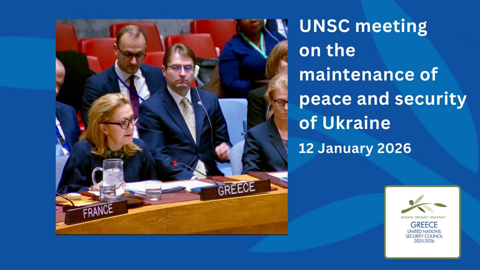 Η Μόνιμη Αντιπρόσωπος της Ελλάδας στον ΟΗΕ, πρέσβυς Αγ. Μπαλτά συντάχθηκε με τον Γενικό Γραμματέα του ΟΗΕ καταδικάζοντας απερίφραστα την πρόσφατη σκόπιμη στοχοποίηση αμάχων καθώς και πολιτικών και ενεργειακών υποδομών, κατά κατάφωρη παραβίαση του διεθνούς ανθρωπιστικού δικαίου, και κάλεσε τη Ρωσία να τερματίσει άμεσα αυτές τις απαράδεκτες, αδικαιολόγητες και παράνομες ενέργειες.
