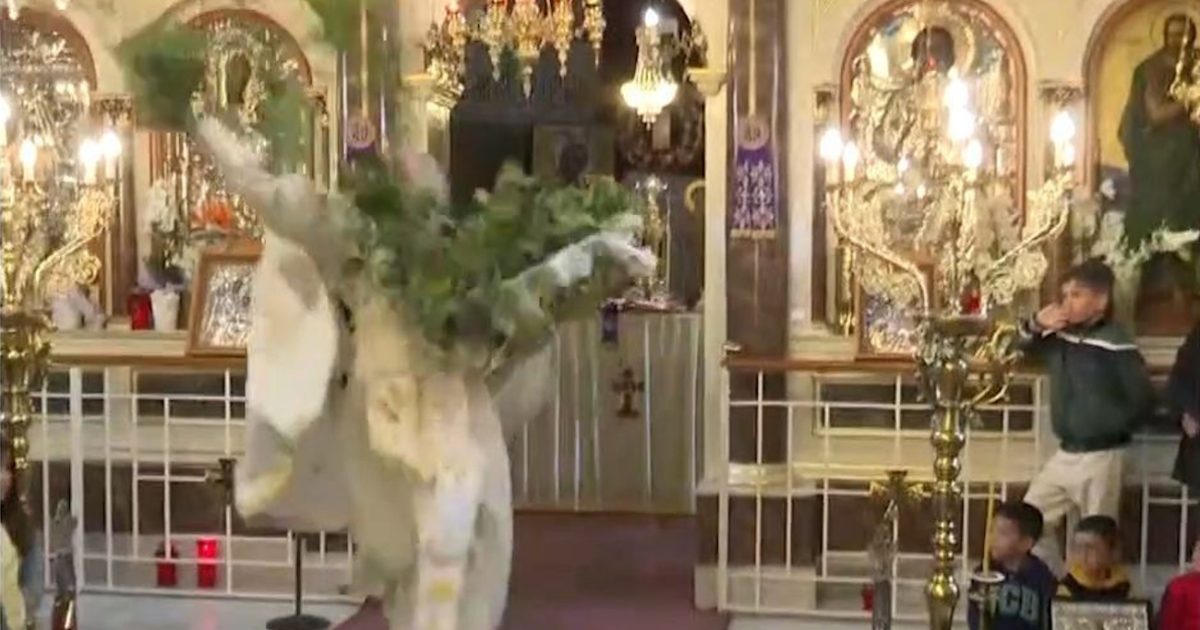 Την πρώτη Ανάσταση έκανε και φέτος ο «ιπτάμενος» ιερέας στην Παναγία Ευαγγελίστρια της Χίου, το πρωί του Μεγάλου Σαββάτου (11.4.26).