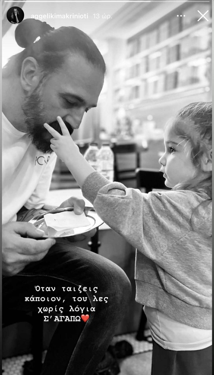 Η φωτογραφία δείχνει τη μικρή της κόρη, Μιχαέλα, να ταΐζει τρυφερά τον θείο της. Η συγκεκριμένη δημοσίευση προβλήθηκε ξανά από τον Δημήτρη Μακρυνιώτη, συνοδευόμενη από τη συγκινητική λεζάντα: «Όταν ταΐζεις κάποιον του λες χωρίς λόγια σ’ αγαπώ». Αυτή η σκηνή δεν απεικονίζει μόνο την αγάπη μεταξύ θείου και ανιψιάς, αλλά και τη δύναμη που έχει μια απλή πράξη να εκφράσει βαθιά συναισθήματα χωρίς λέξεις.
