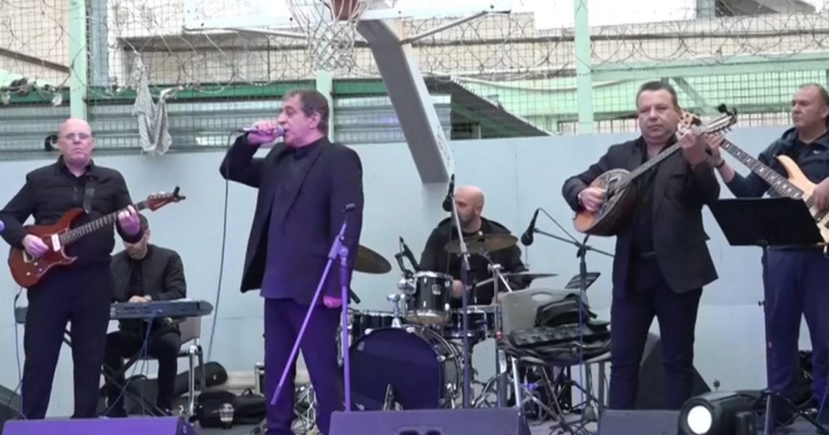Στον προαύλιο χώρο των φυλακών του Κορυδαλλού τραγούδησε ο Θέμης Αδαμαντίδης και μεταξύ των θεατών μέσα από το κάγκελα του κελιού της ήταν και η Ειρήνη Μουρτζούκου.