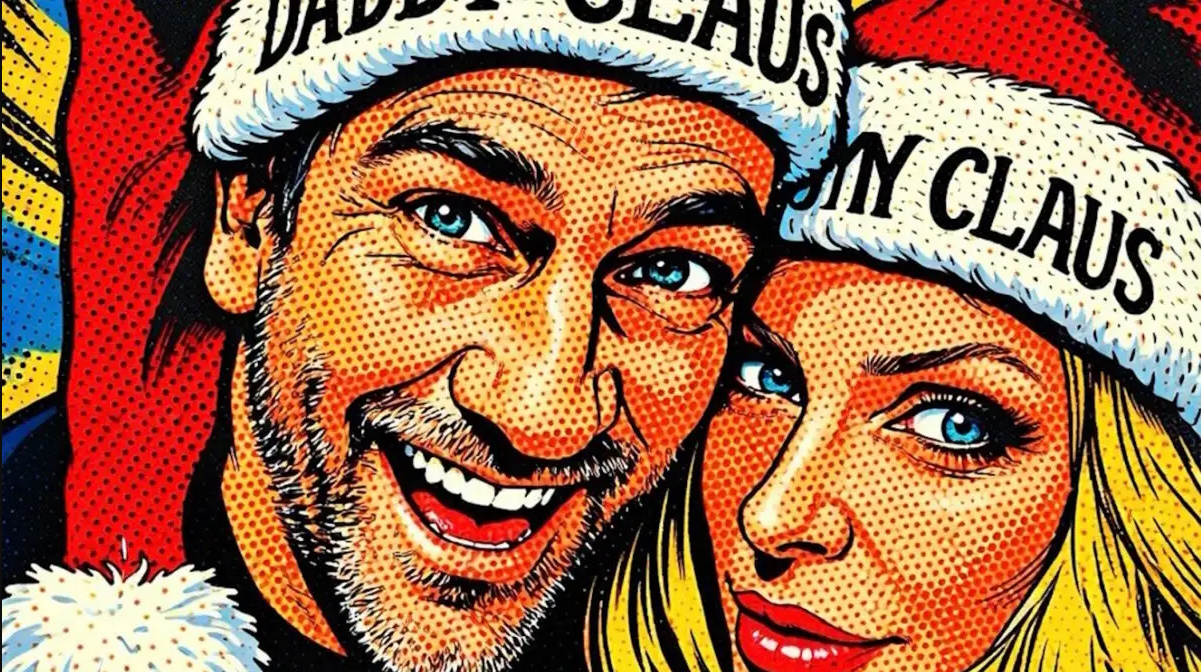 Οι δυο φορούσαν δύο σκουφιά που έγραφαν «Daddy Claus» και «Mommy Claus».